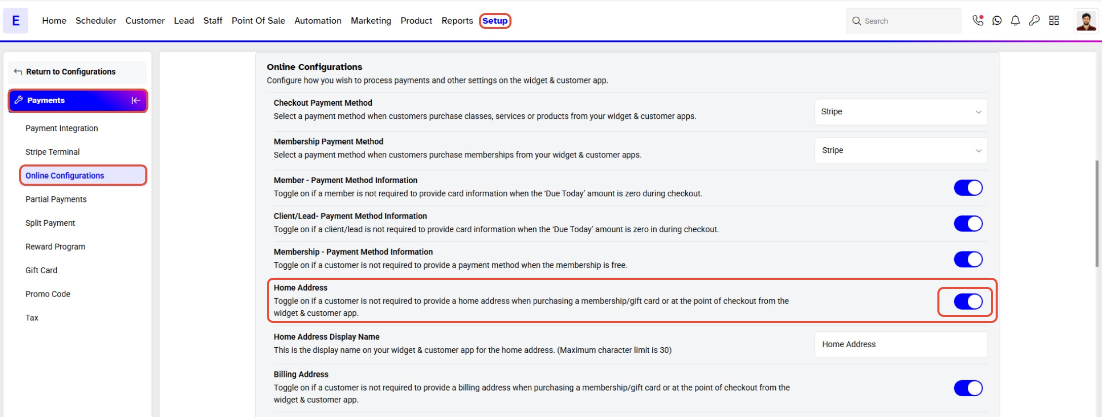 To Configure the Home Address as Optional while checking out on the Widget and Customer App, follow the below steps.