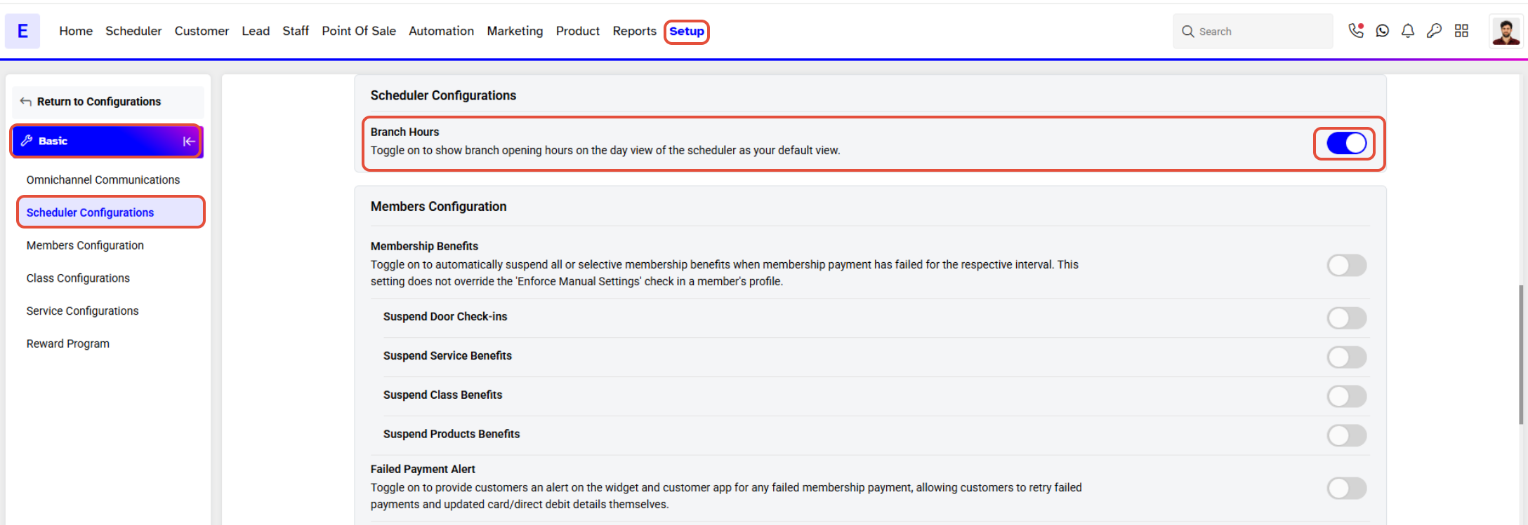 To show Branch Opening Hours on the Scheduler, follow the below steps: