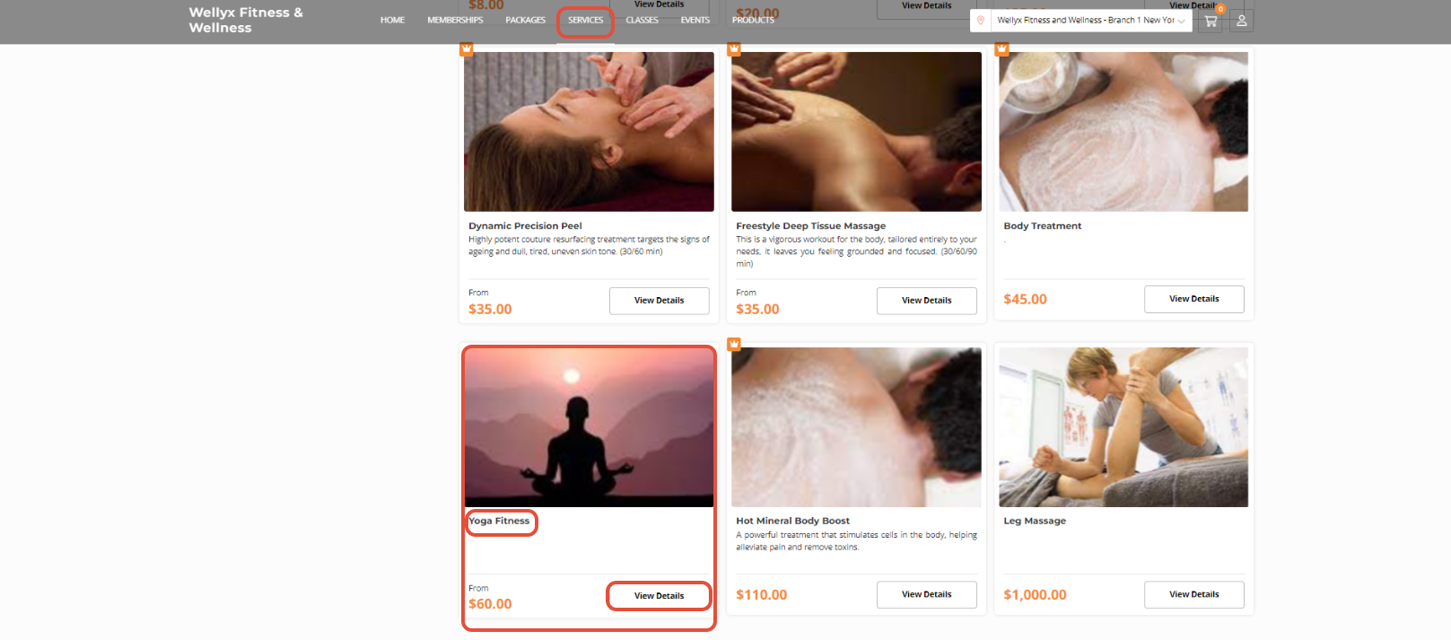 Click on the View Details Button against the selected Service.