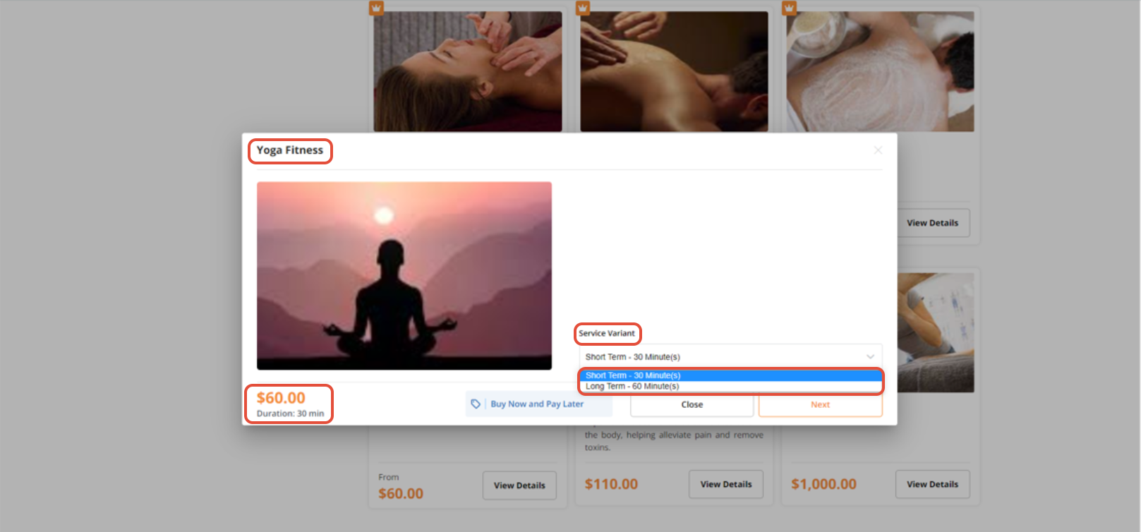 Select the Service Variant from the Dropdown Menu.