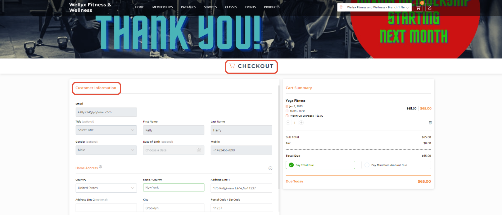 Once done adding Payment Information, click the Checkout Button to confirm the Booking.