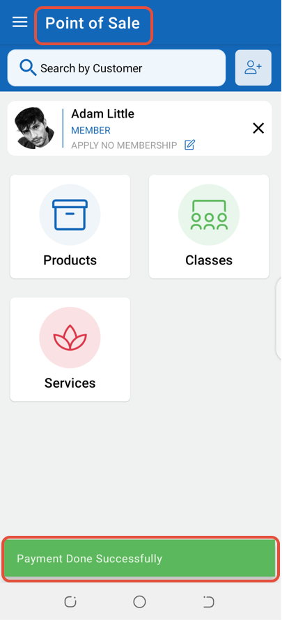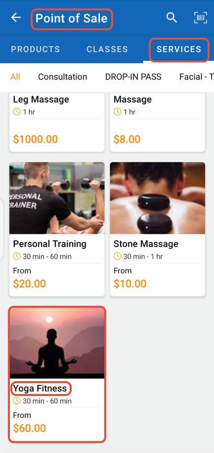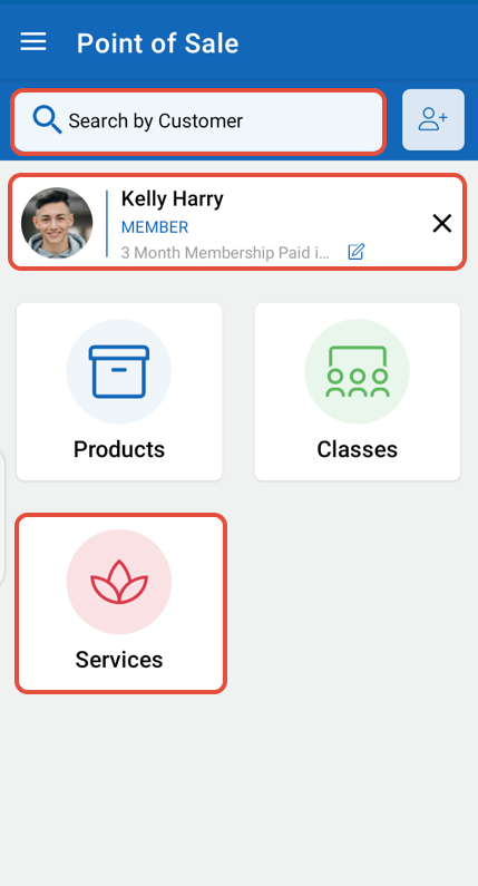 Whilst Point of Sale, select a Service from the Services Menu.