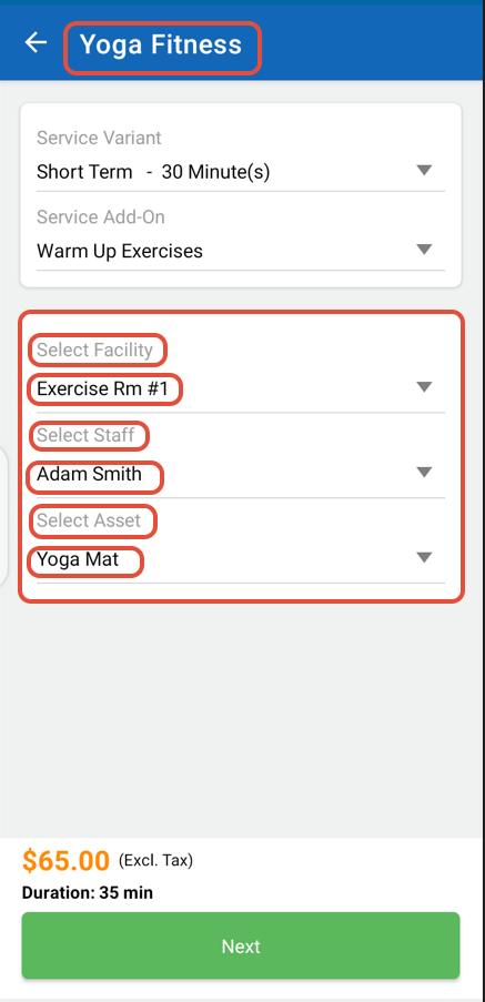 Now, choose Facility, Staff Member, and Asset from the second section of the Service.
