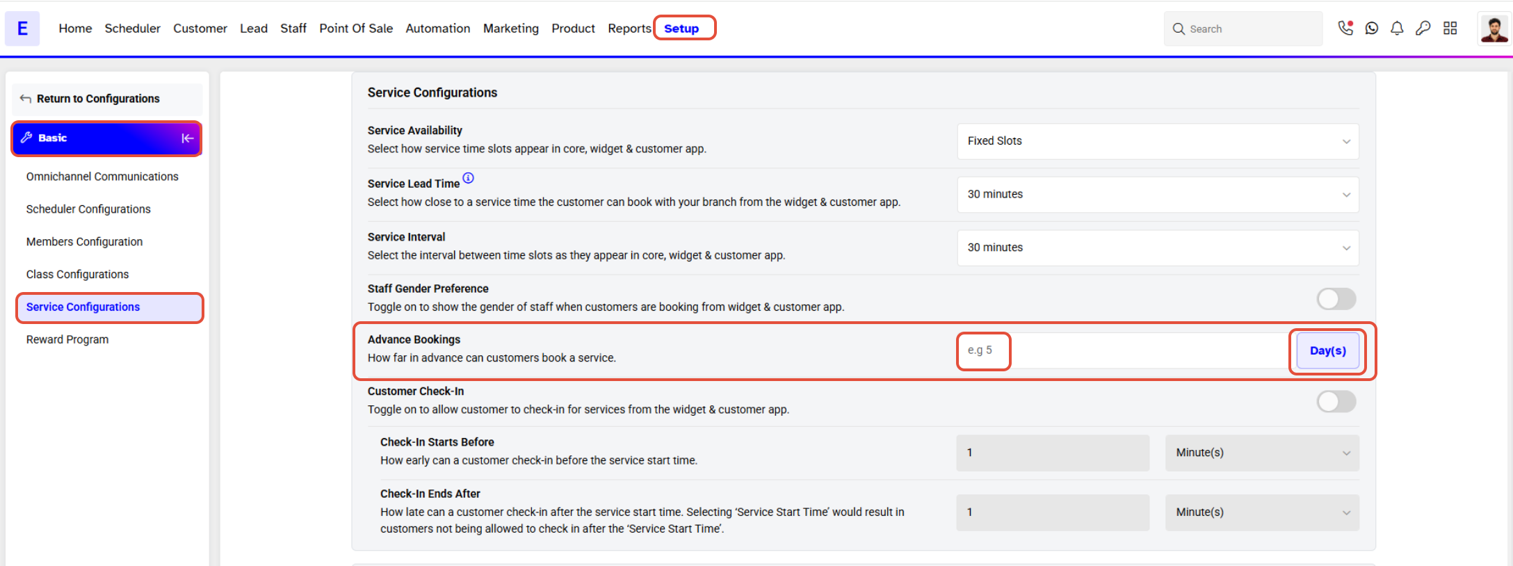 To configure the Service Bookings in Advance functionality, follow the steps below: