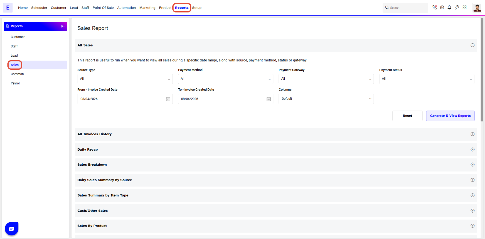 - By default, the Sales Tab will open.
