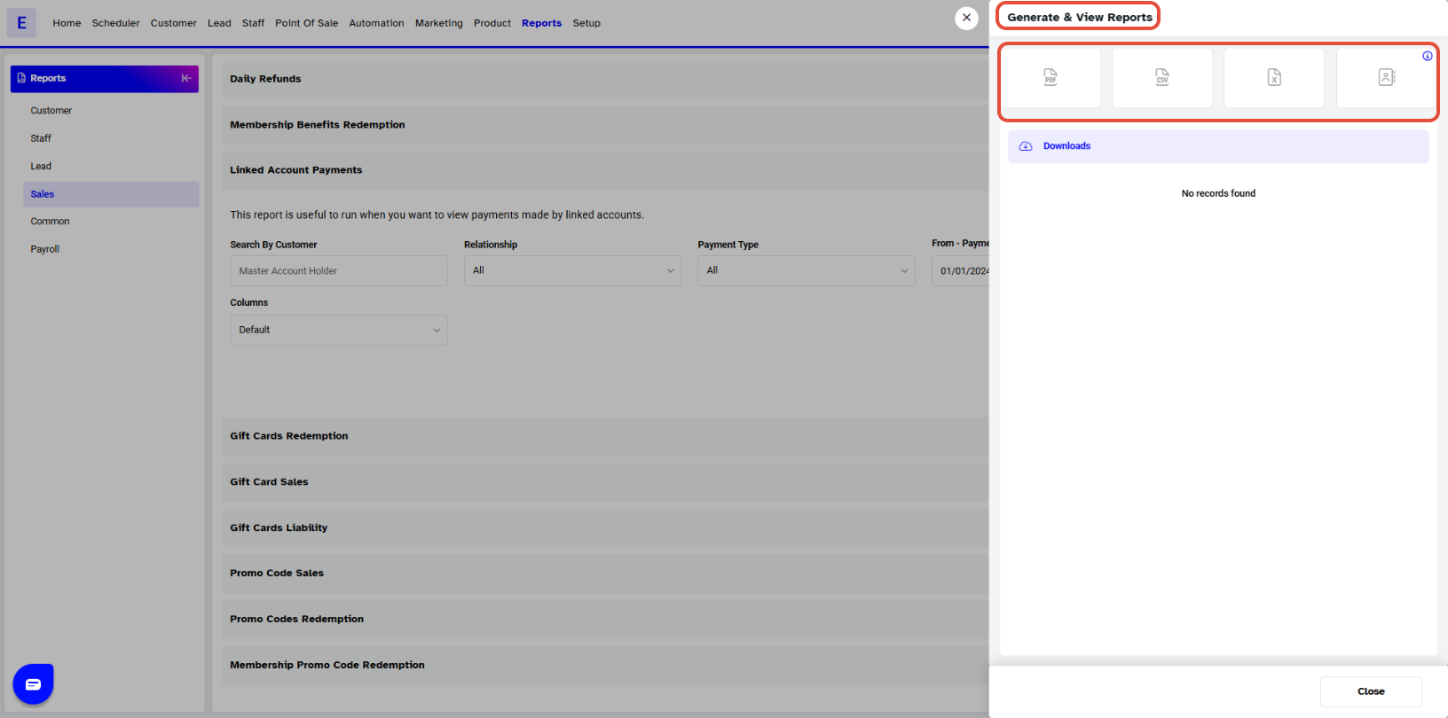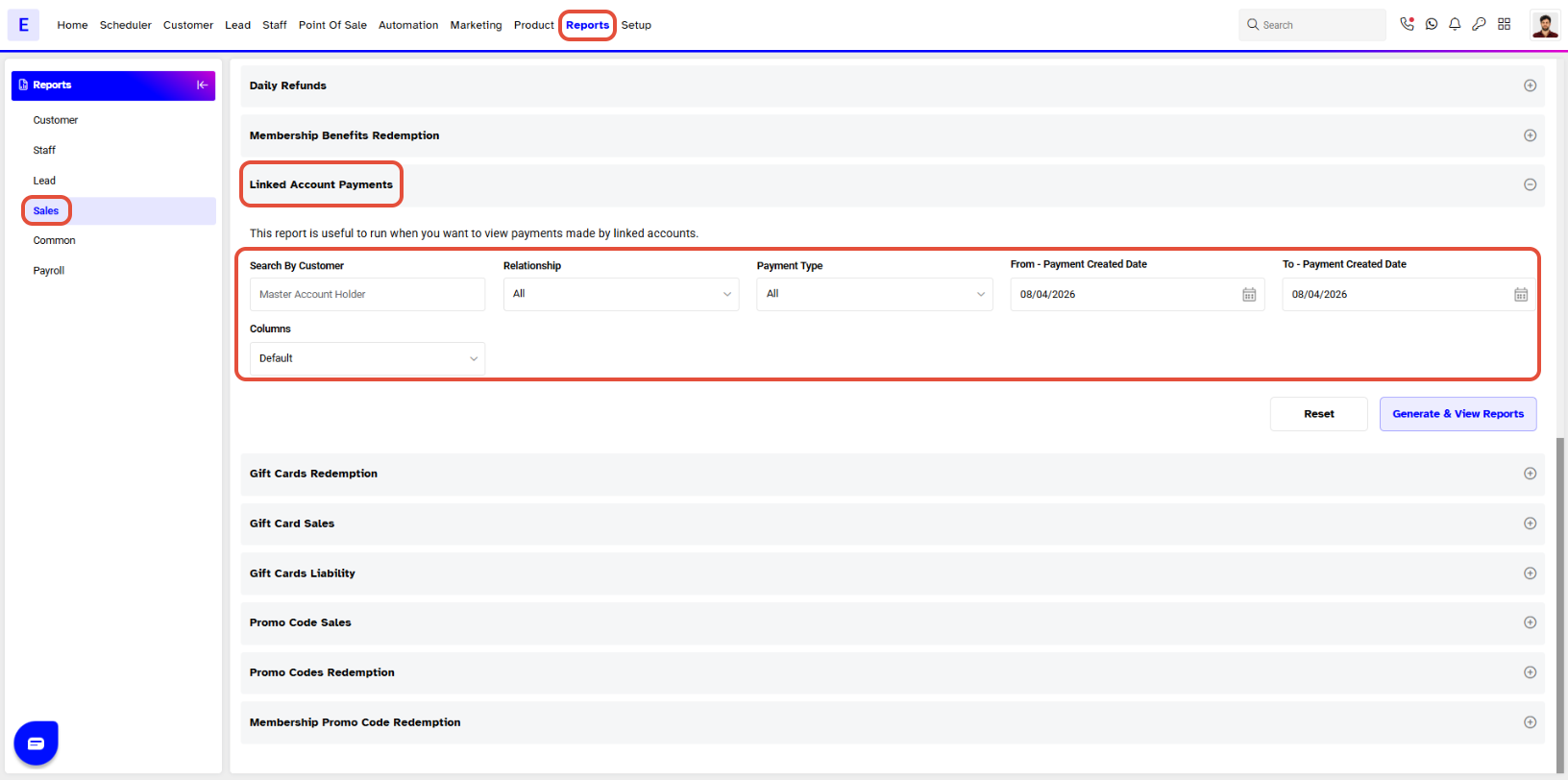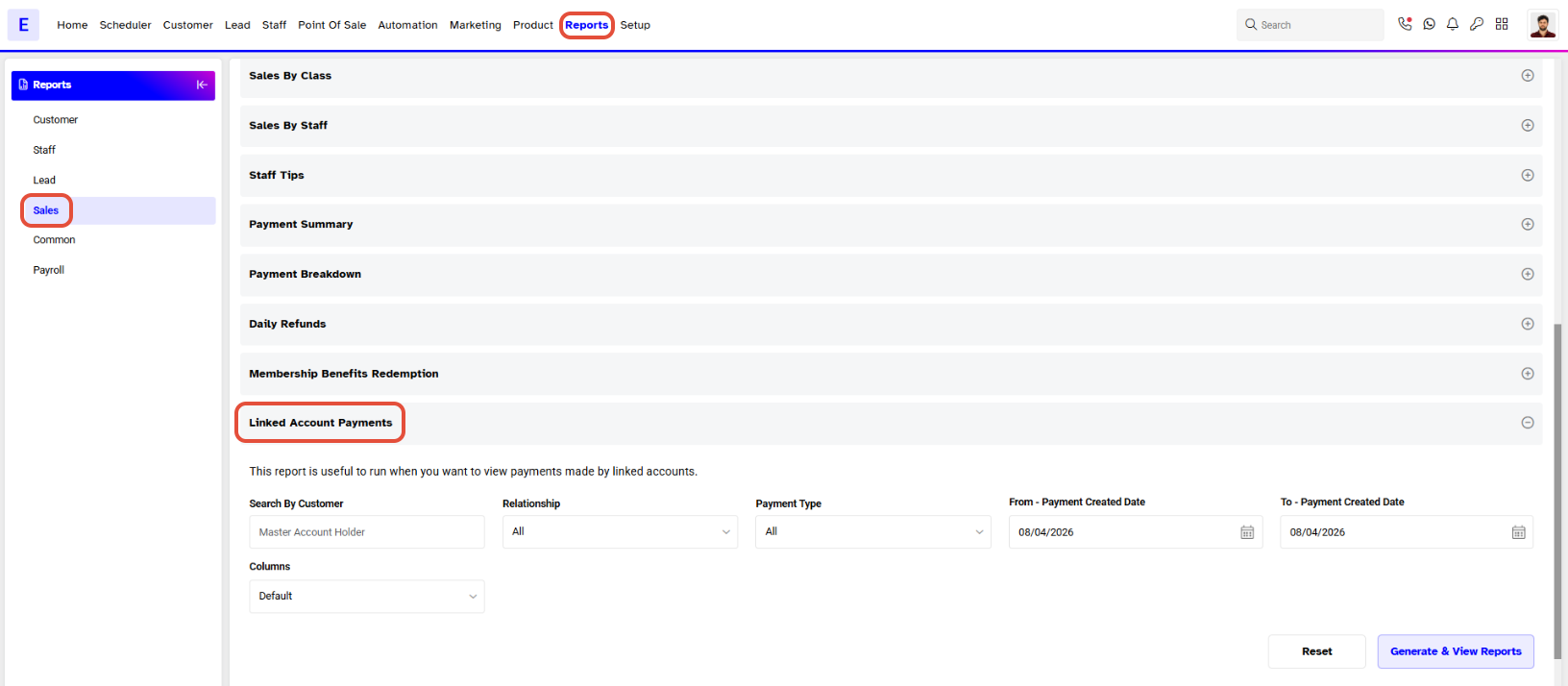- Click on the Linked Account Payments Report.