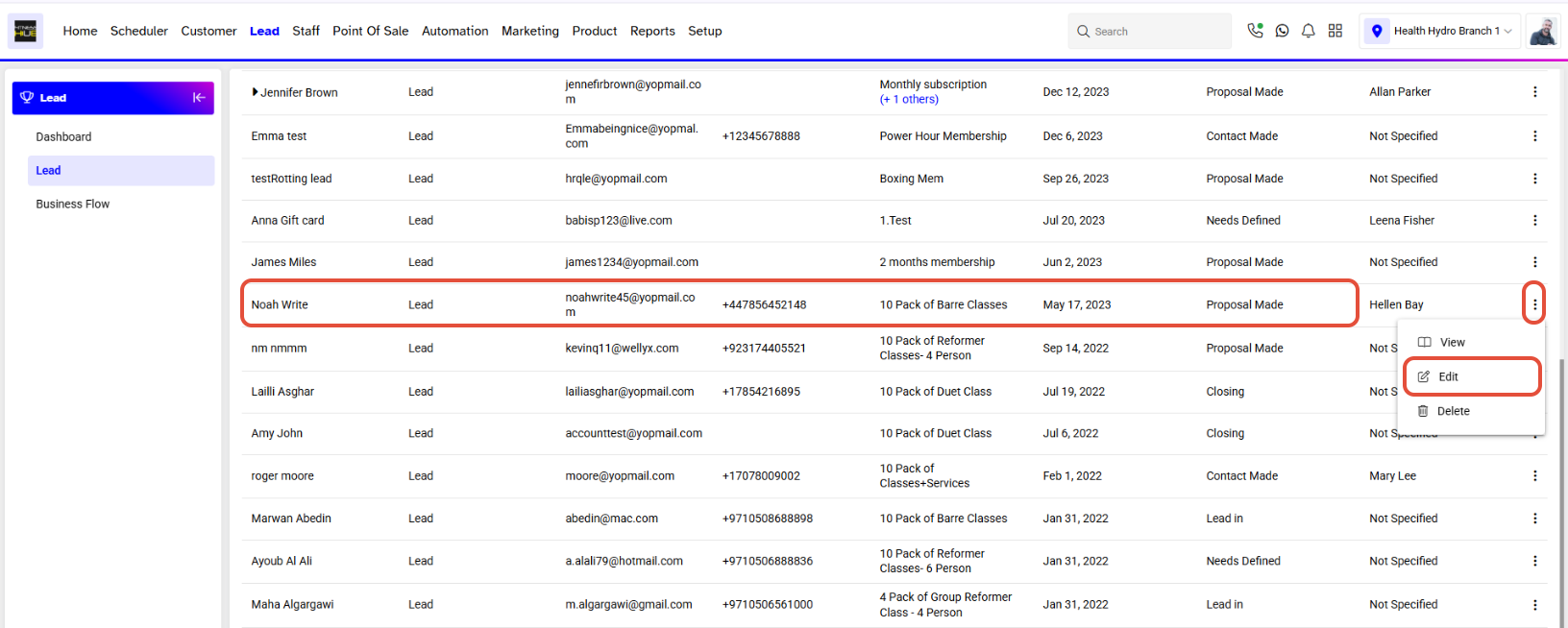 - Click on the Edit Button against the Lead.