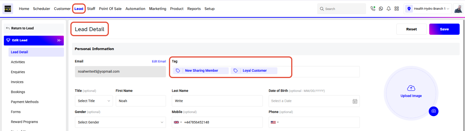- Click on the Tag field in the Lead Profile.