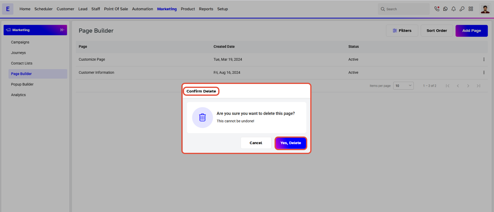 This guide explains how to delete a Popup in Core. By following this guide, merchants can manage and remove unwanted popups.Step 1: Navigate to Popup Builder