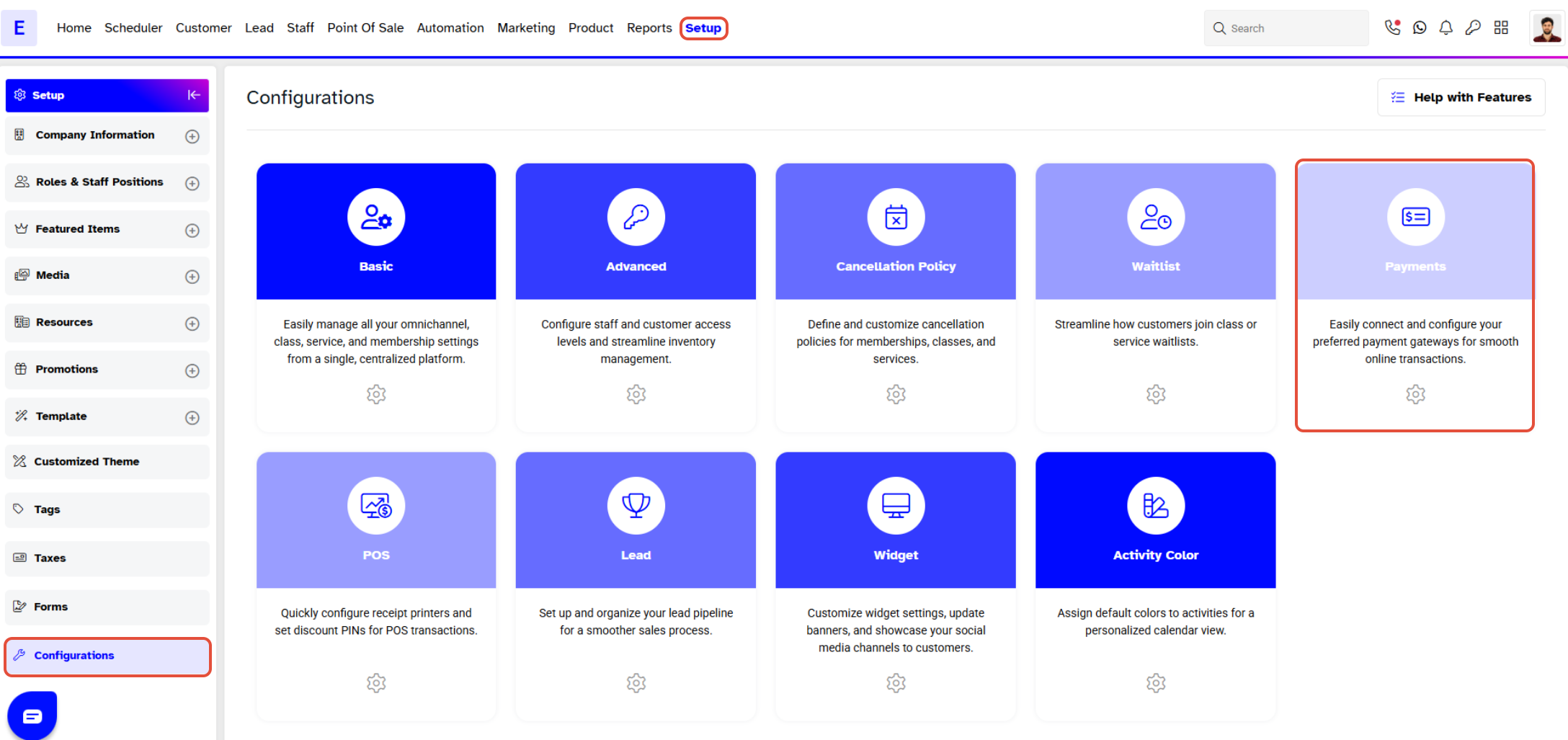 In Setup, navigate to Configurations and then click on the Payments Tab.