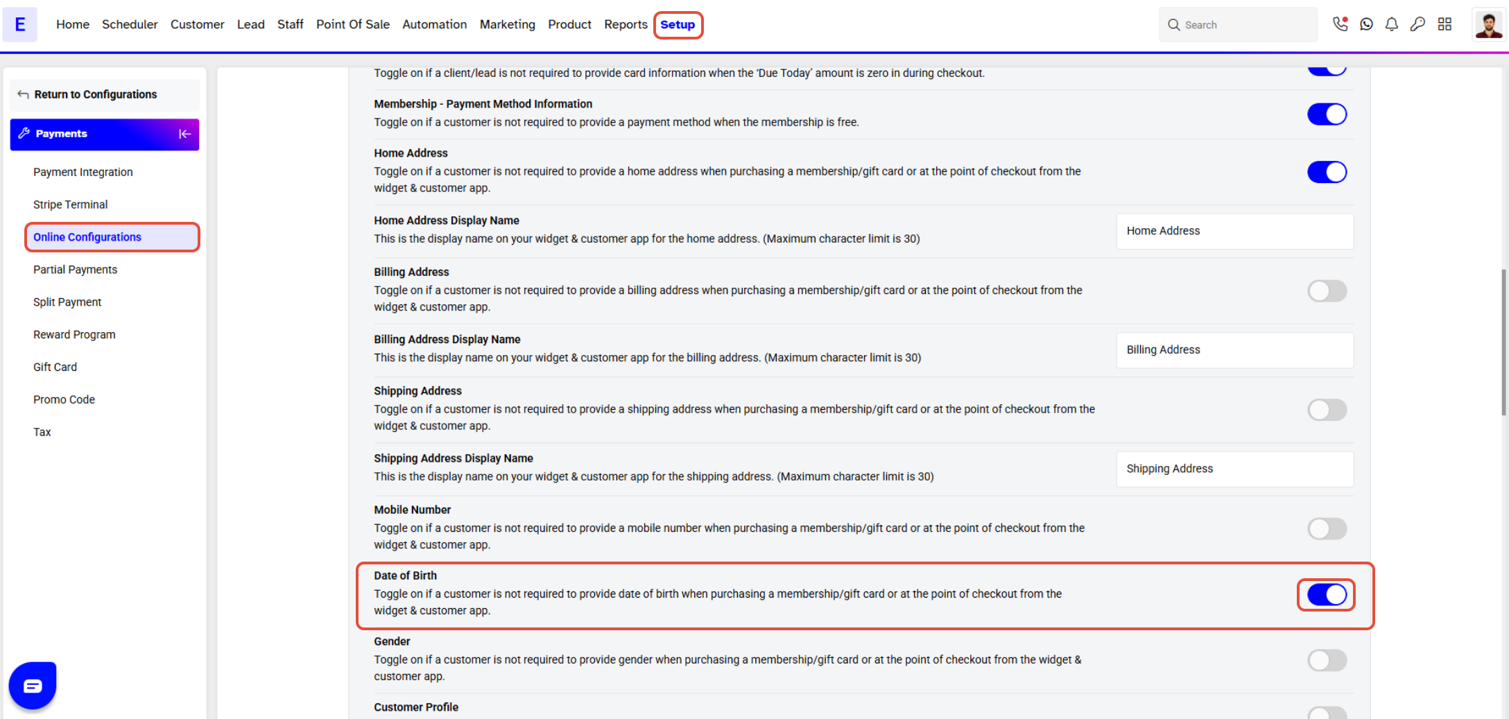 To Configure the Date of Birth as optional while checking out through the Widget and Customer App, follow the steps below: