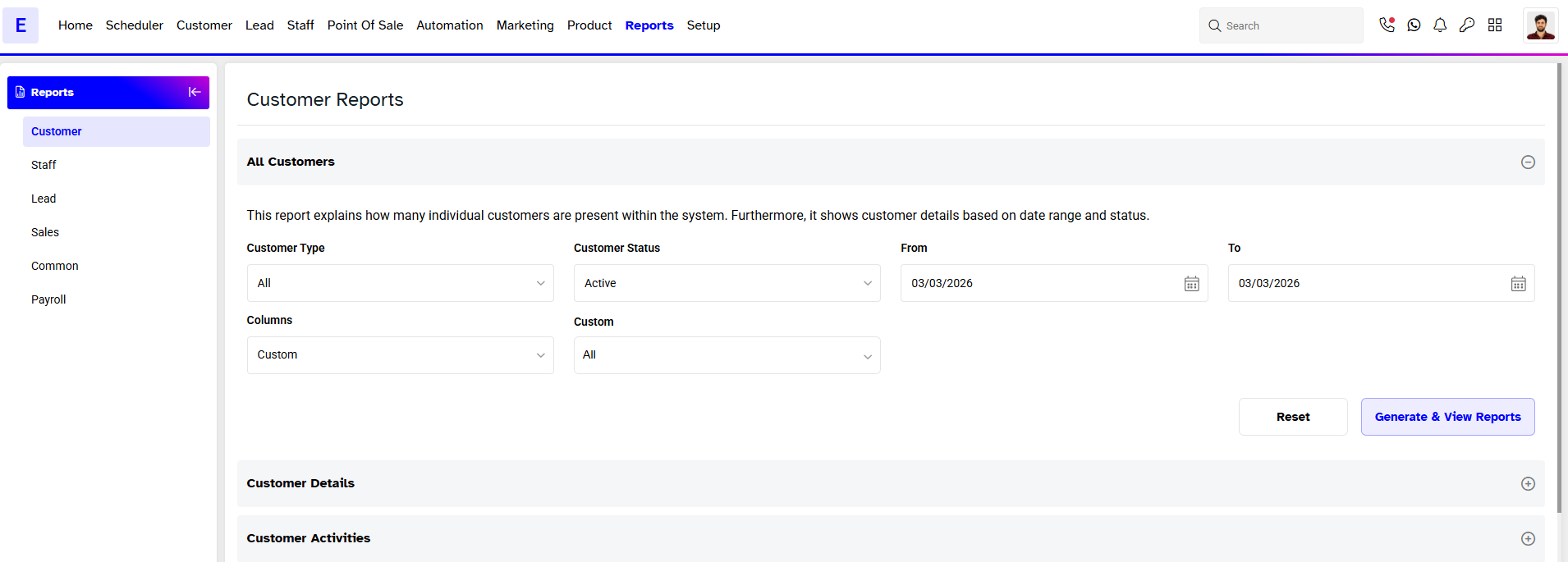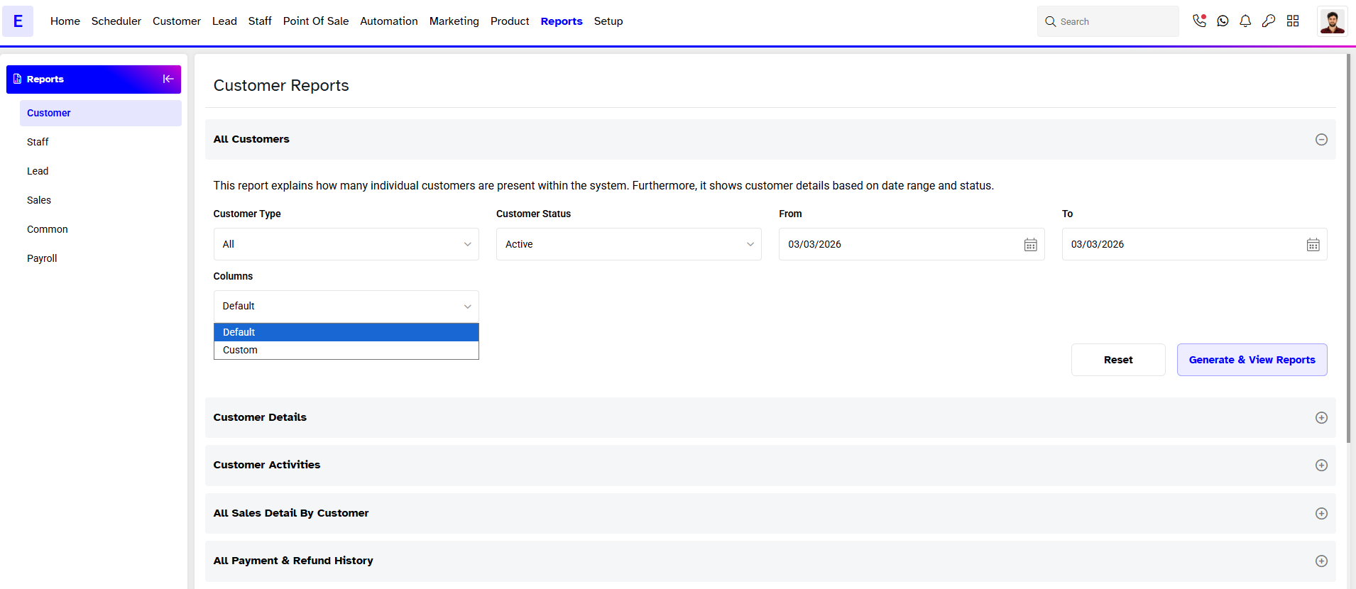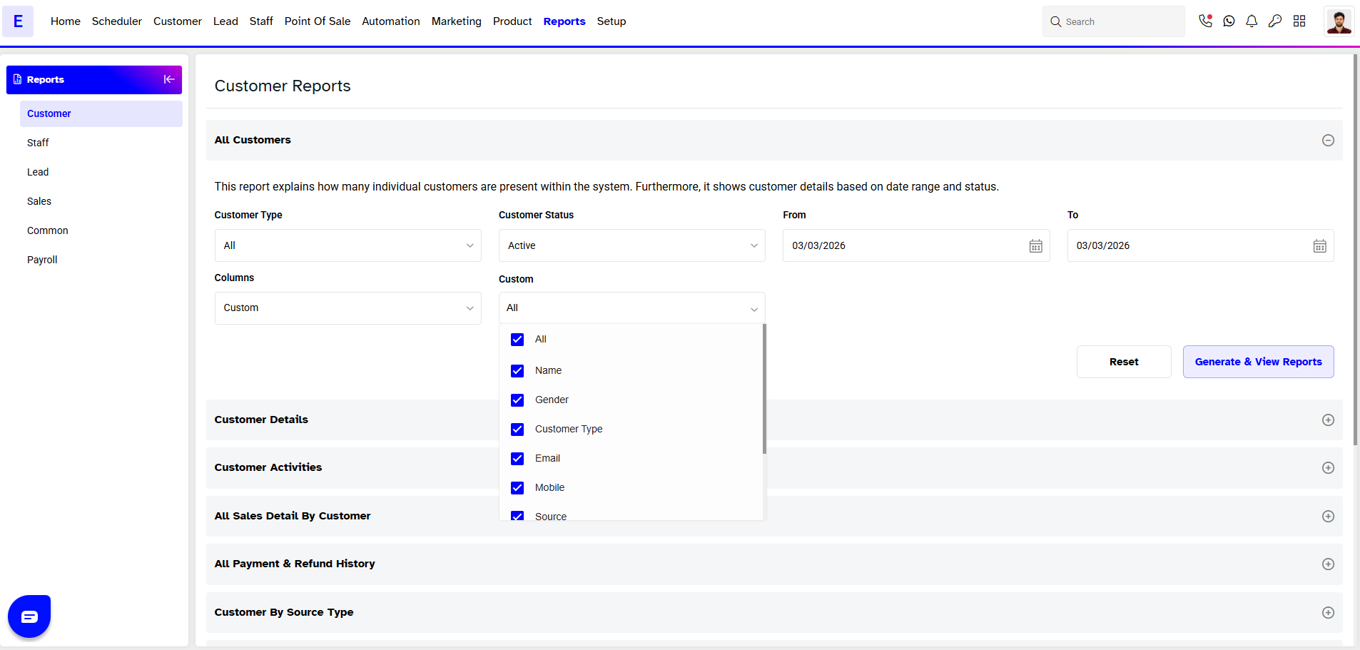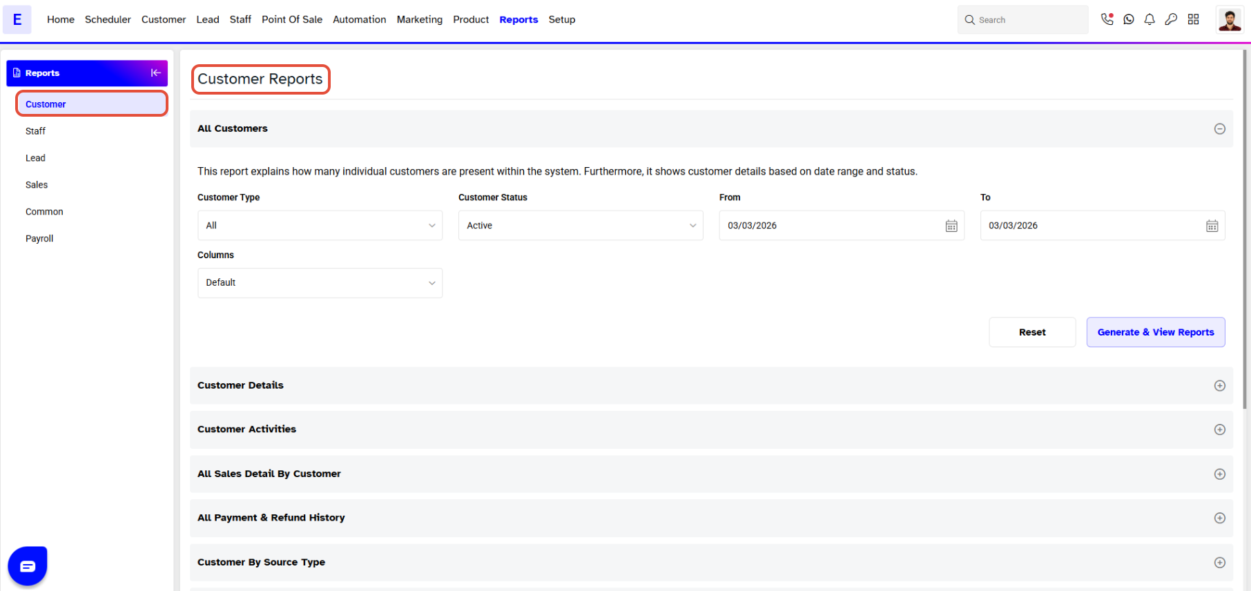 - Click on Generate & View Reports