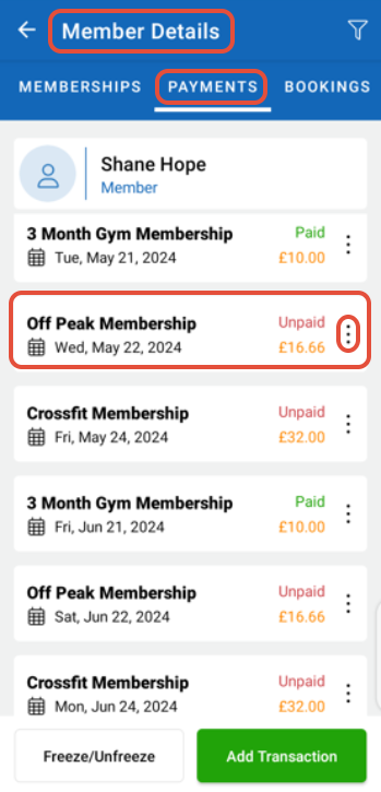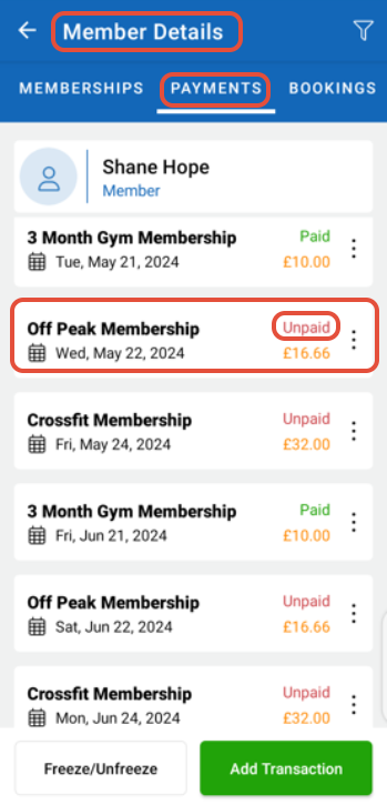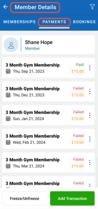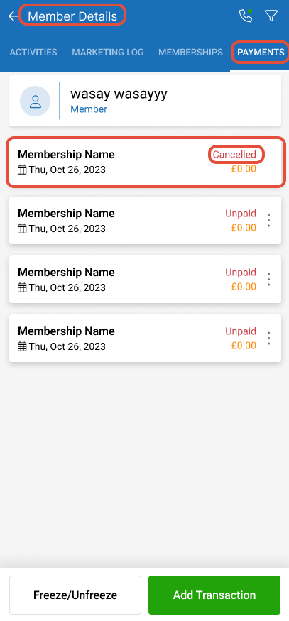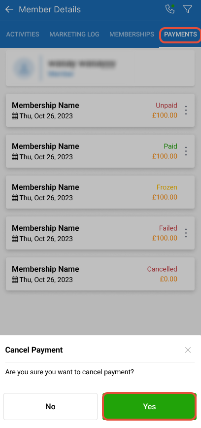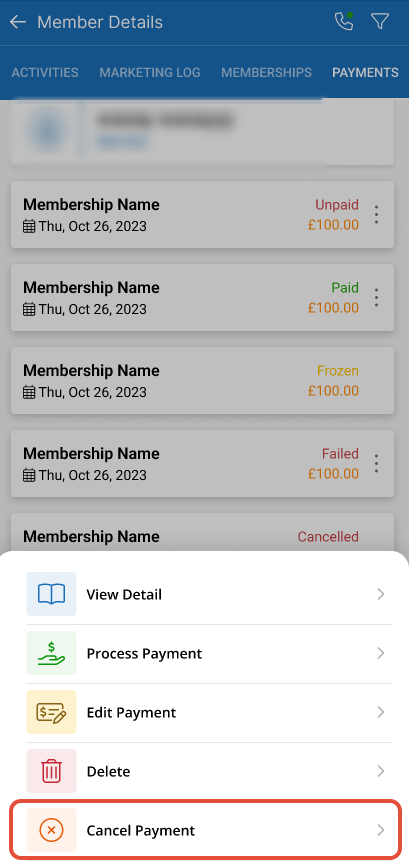 To cancel the Membership Payment of a Member from the Staff App, follow the steps below:
