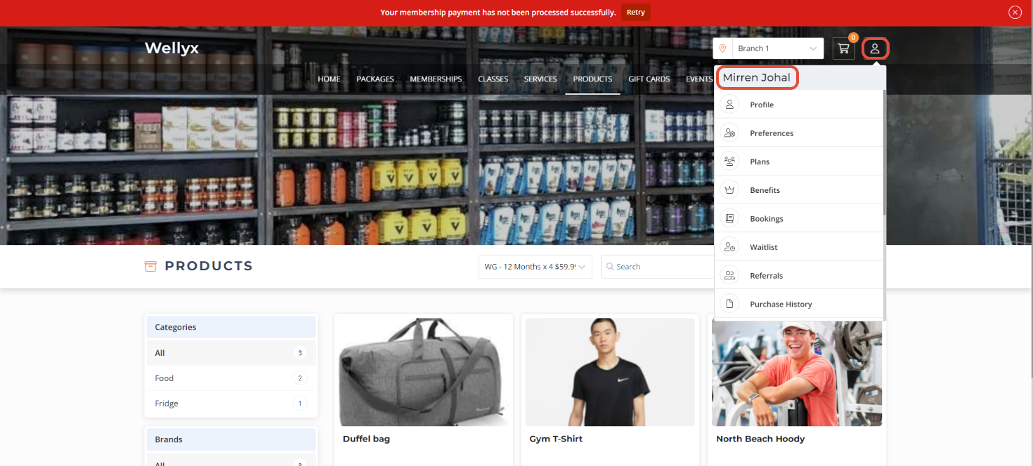 Members can also Retry their Payment through the Membership Payment Alert notification if their Payment fails.