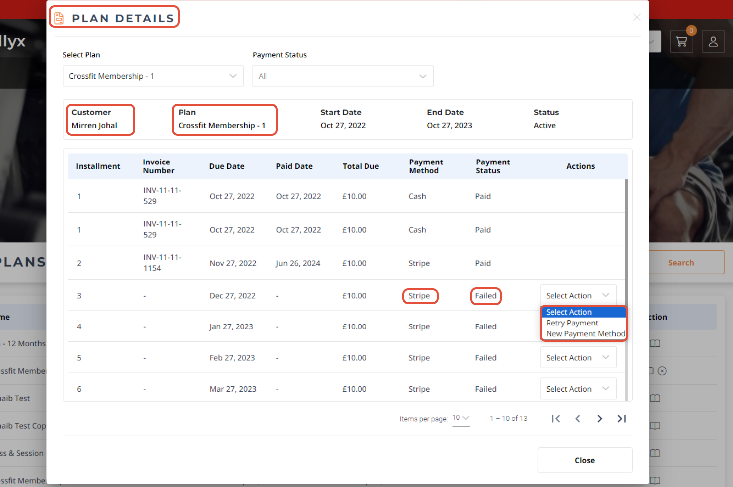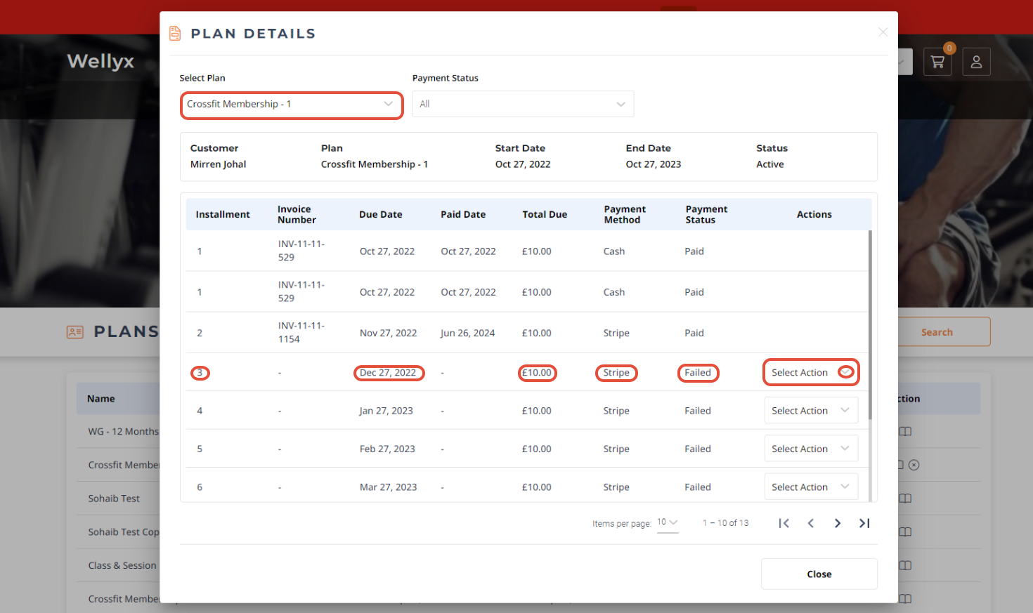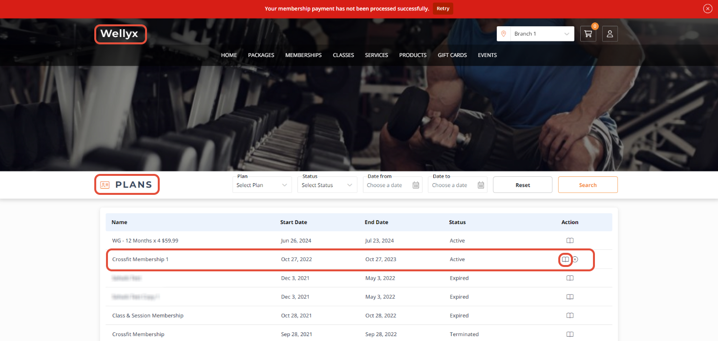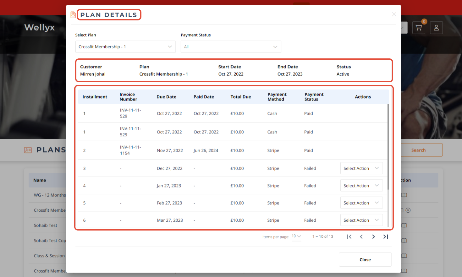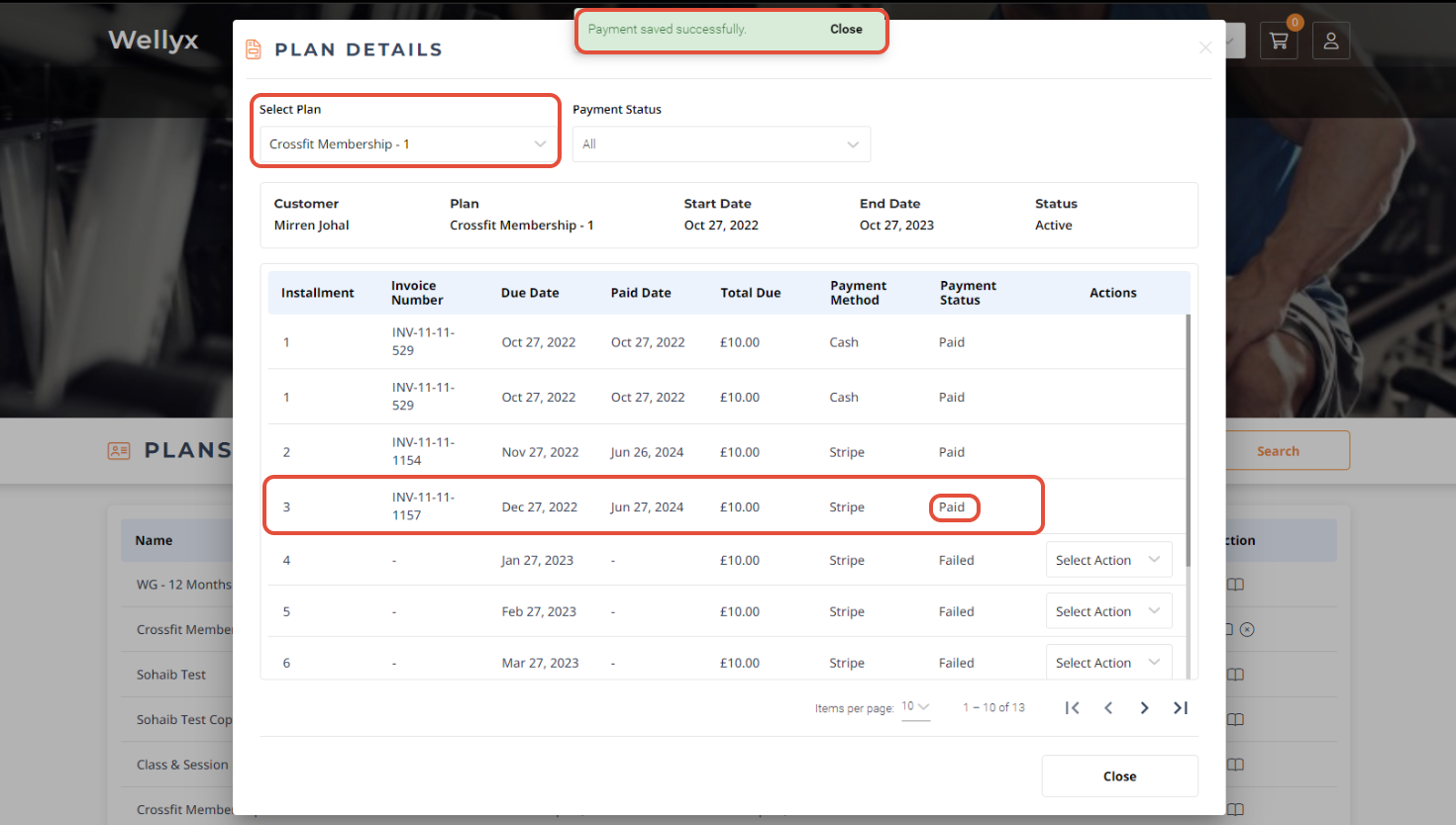 Once done, the Plan Details Popup Box will display all the Membership Payment Details and their Status.