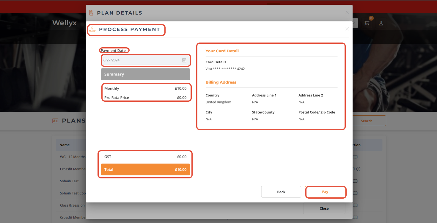 Now, the Process Payment Popup will open. review all the Payments details and click on the Pay Button.
