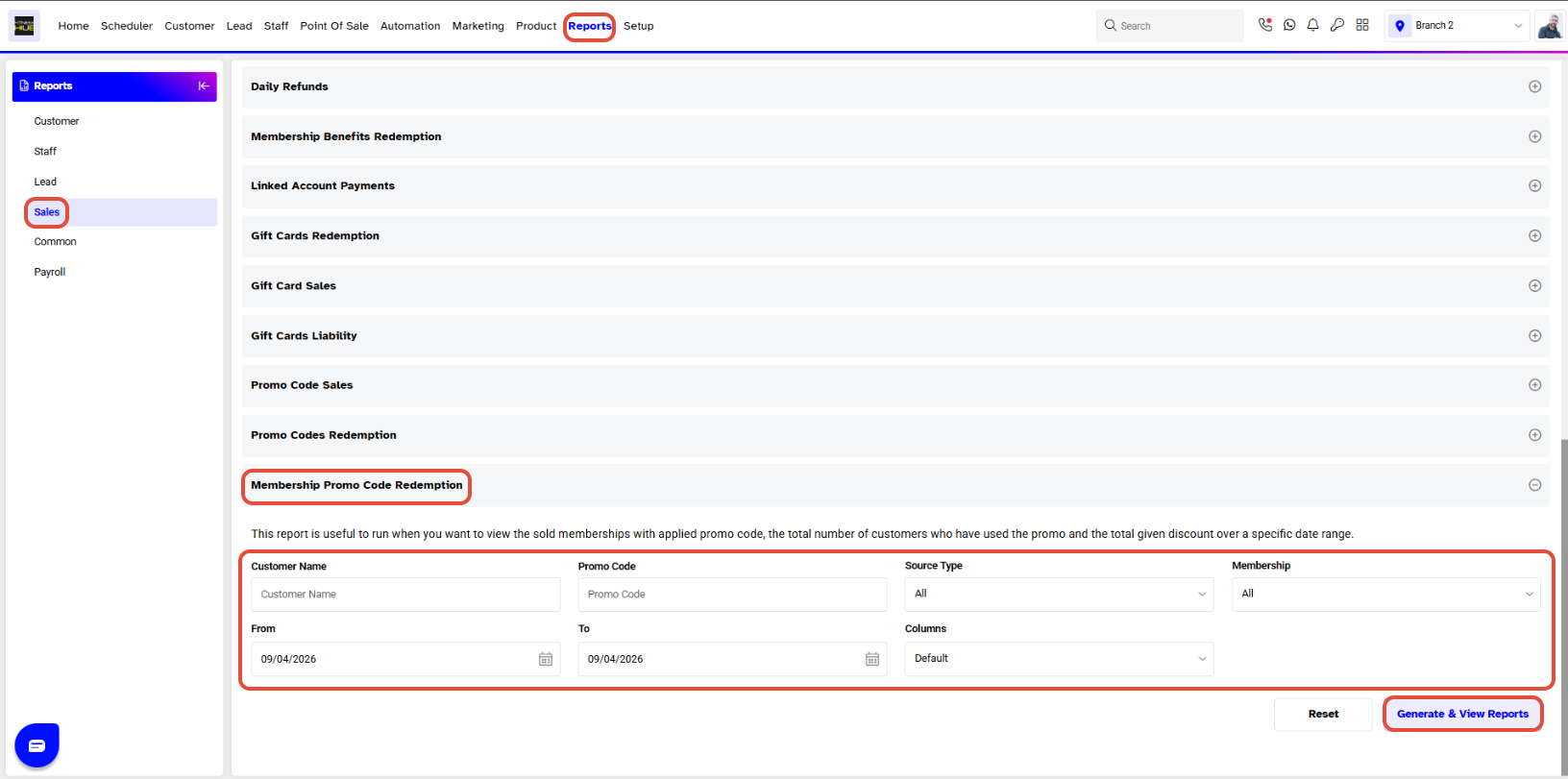 - Step 1: Navigate to the Membership Promo Code Redemption Report
