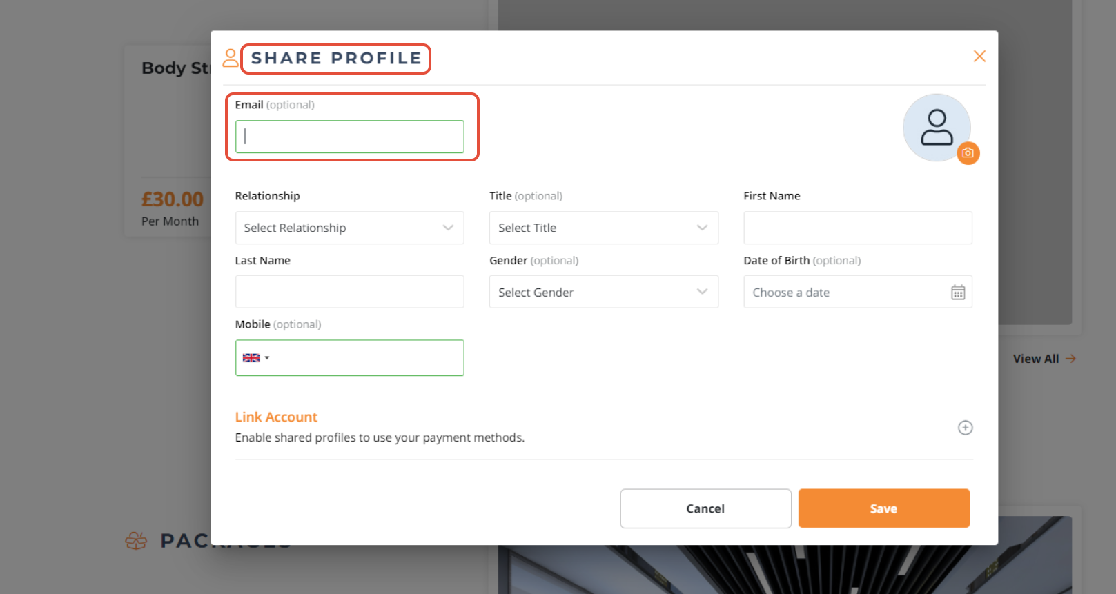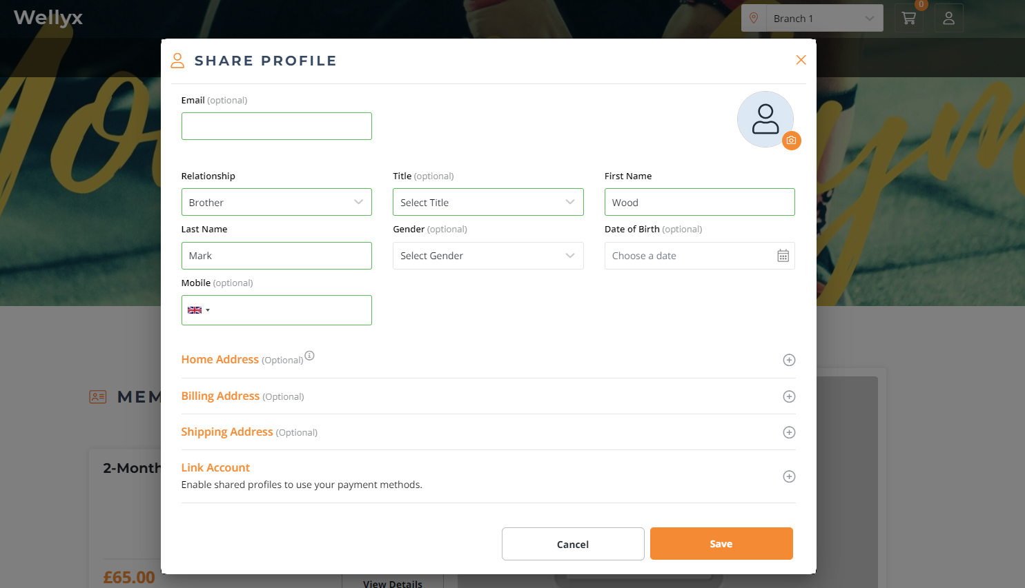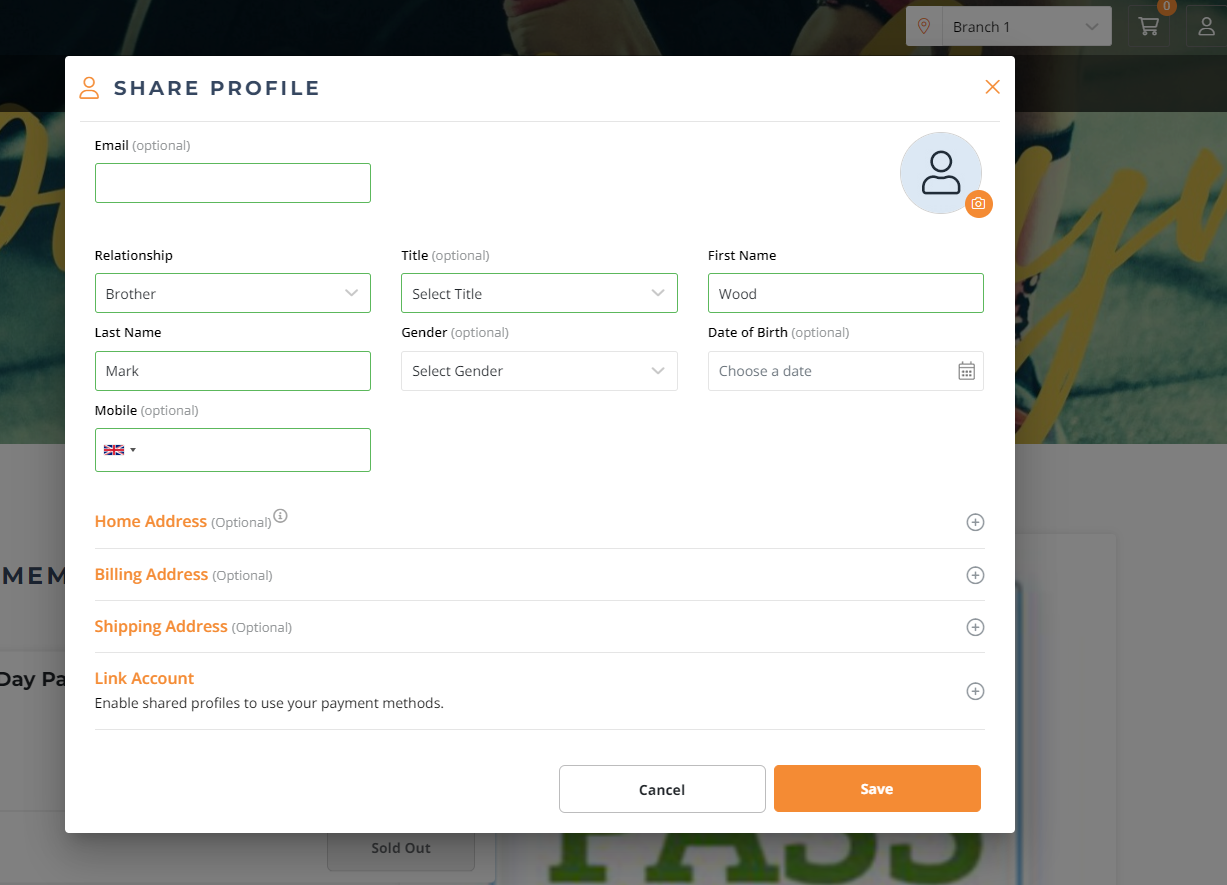 Click on the plus button next to the "Link Account" option If the Primary Customer wants to link the Payment Method with the Secondary Account.