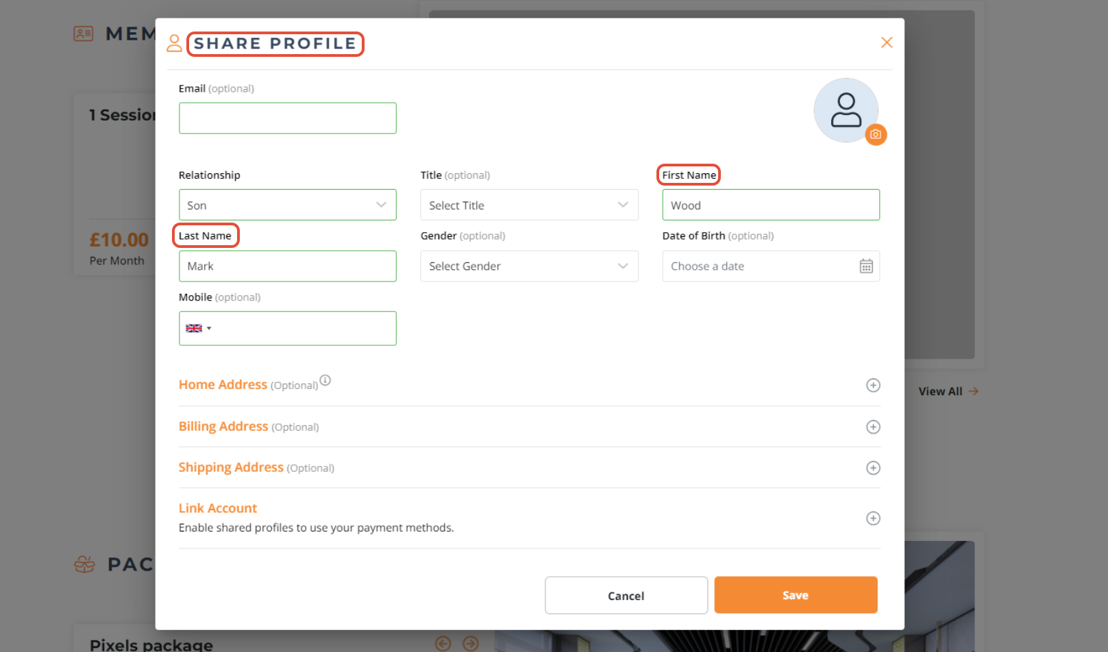 Add the First and Last Name of the Secondary Account.