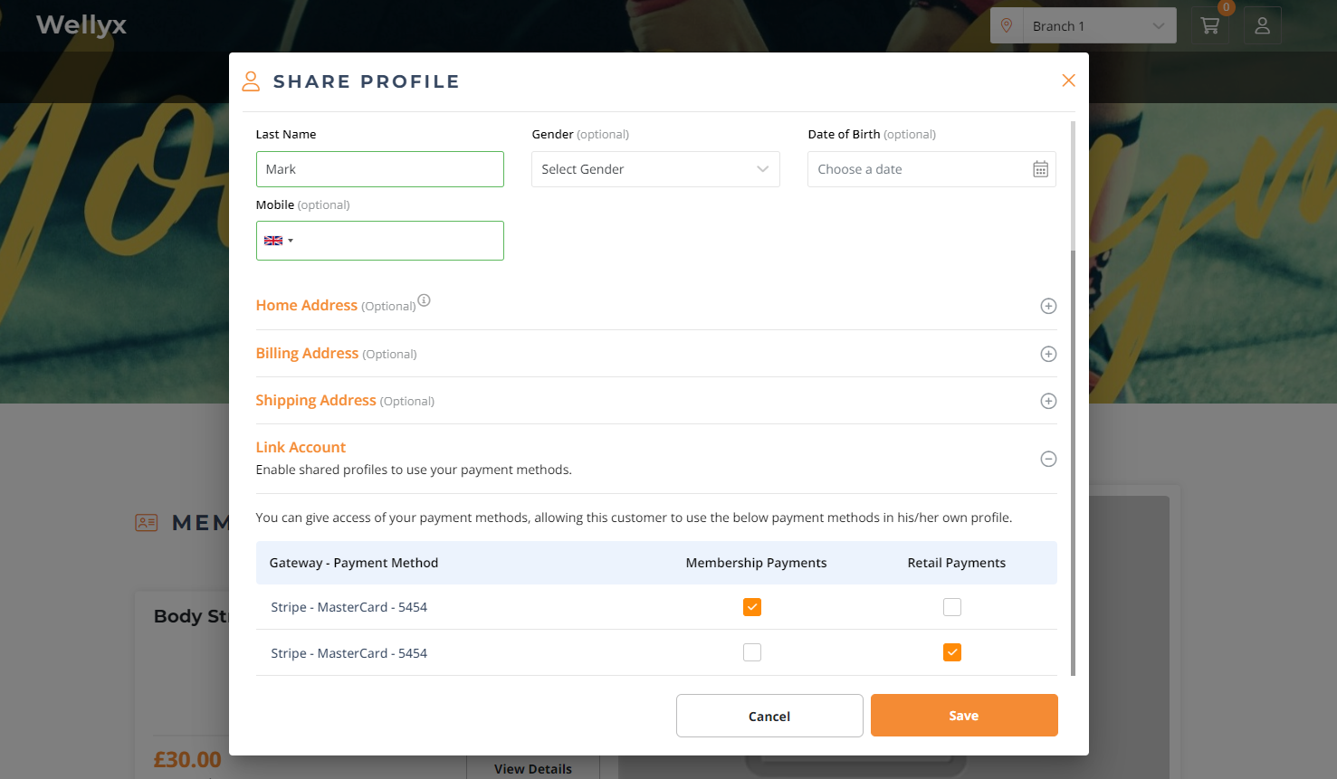 Check the Membership or Retail Payments Box to allow purchases using the linked account for Membership or Retail Items.