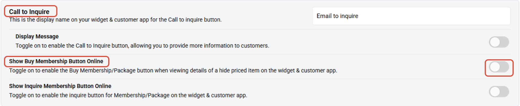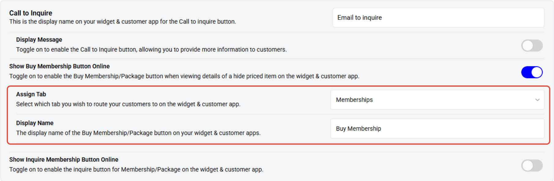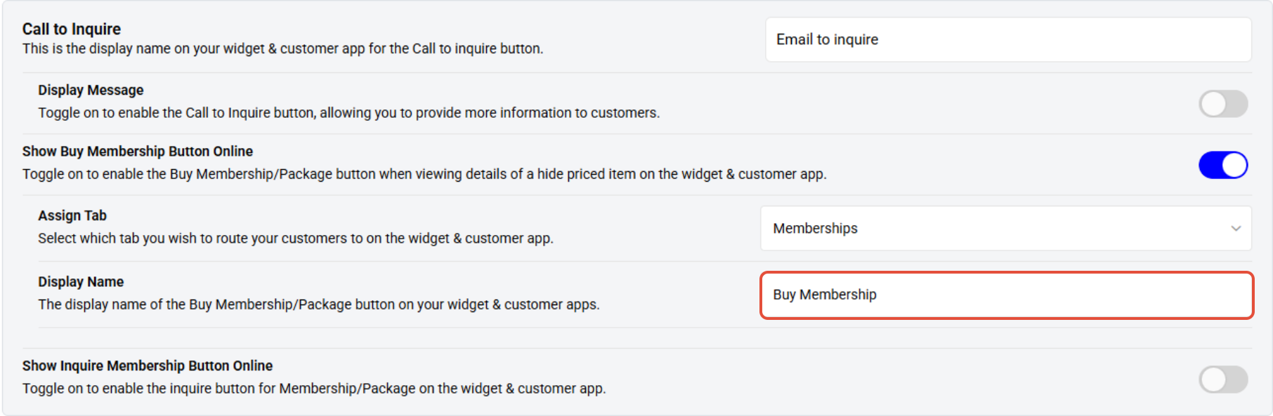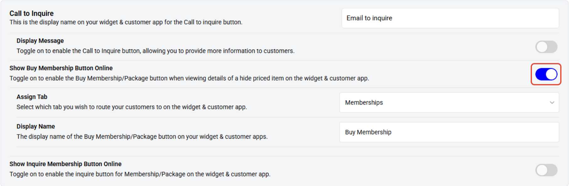 Toggle on to enable the Show Buy Membership Button for Hidden-priced Items on the Widget and App.