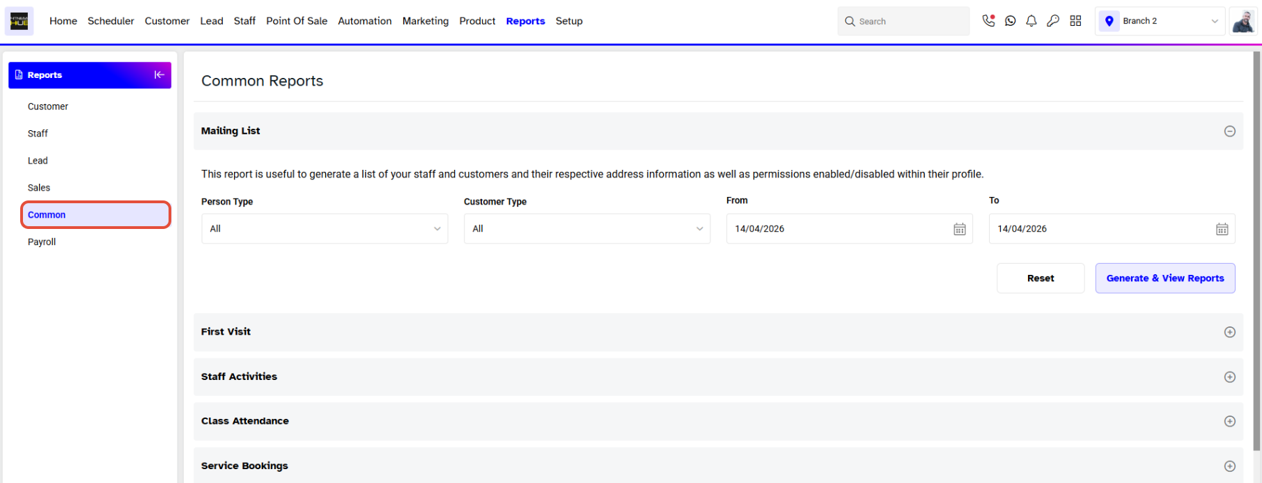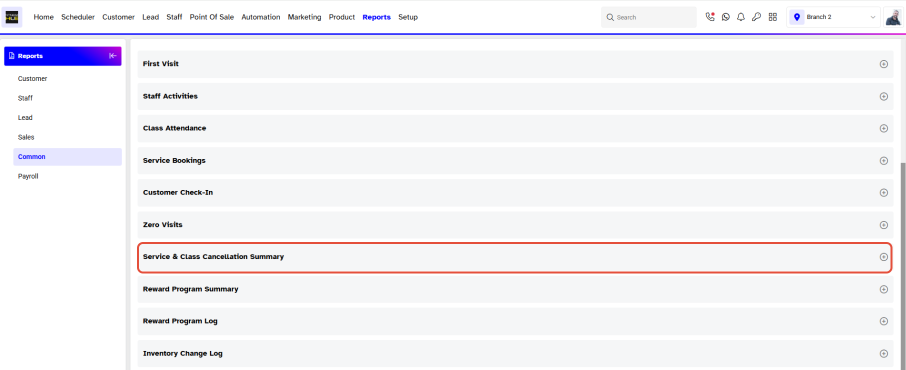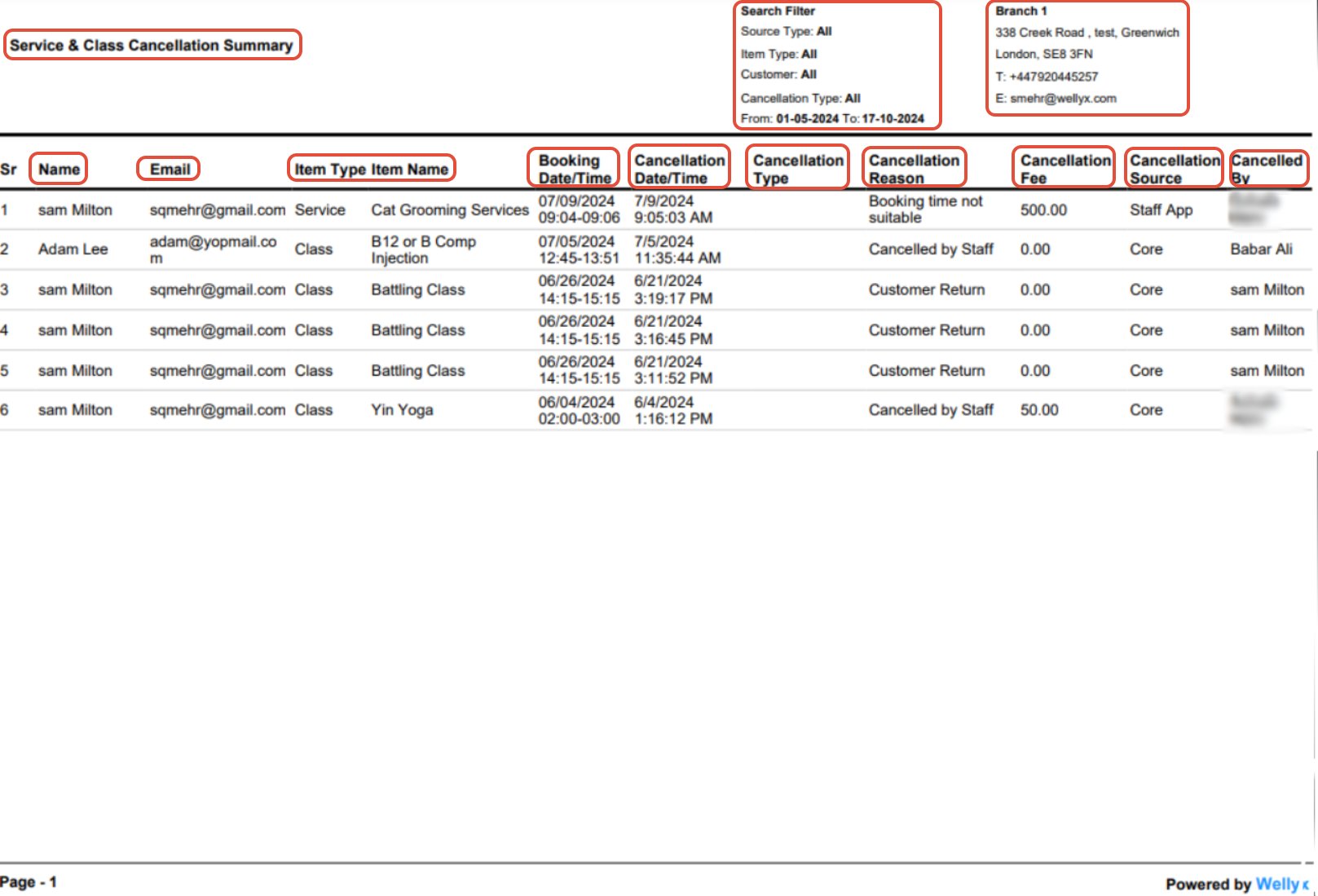 This Report is useful to run when you want to view how many Classes, Services have been cancelled by anyone and source within a Branch between a defined Date Range.