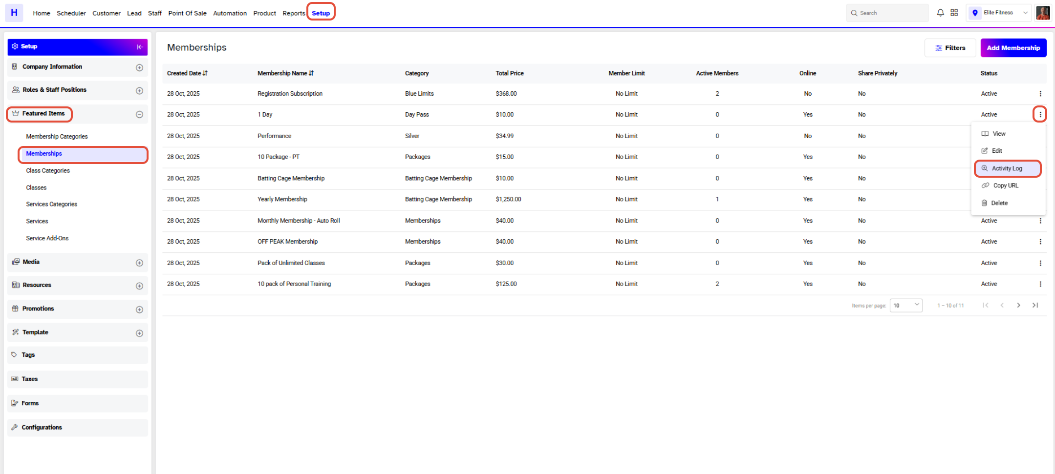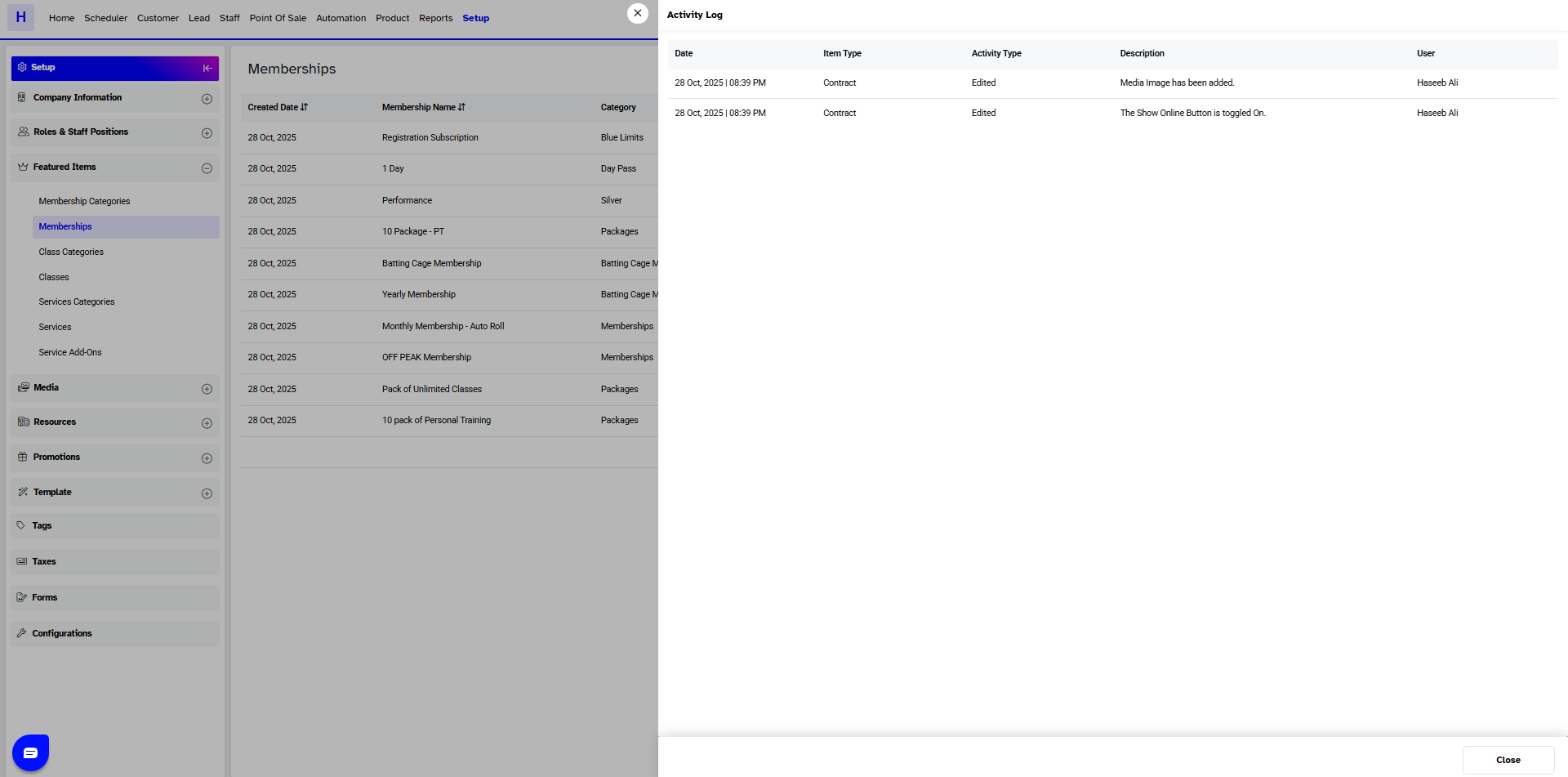 The Activity Log will only appear for Memberships that have been edited. If the Merchant edits a Membership and no changes are made to any fields or toggle, the Activity Log will not be generated.