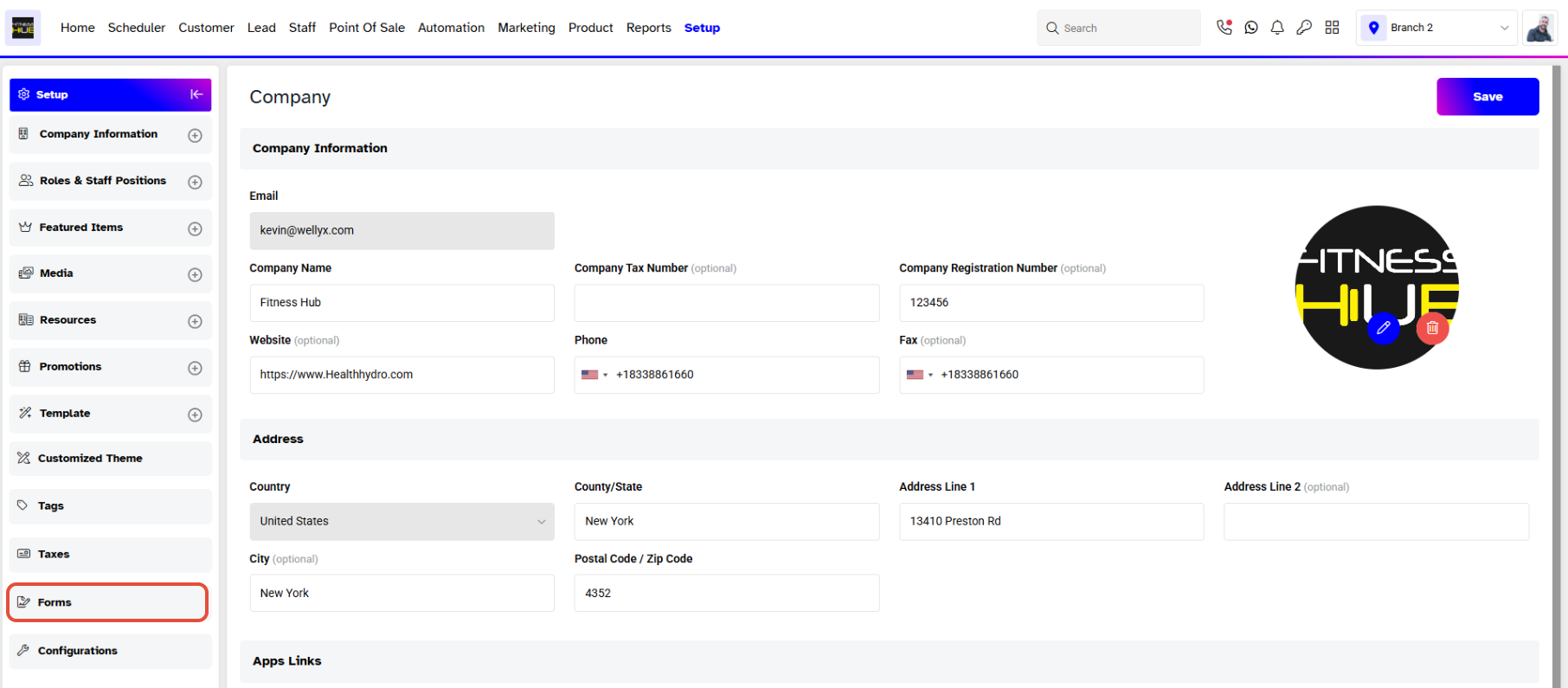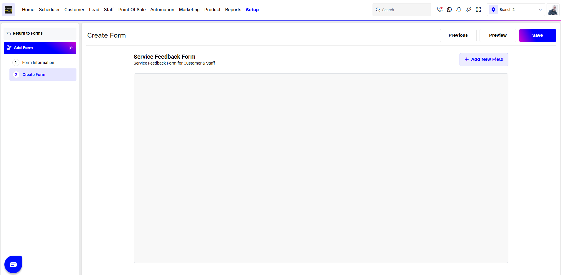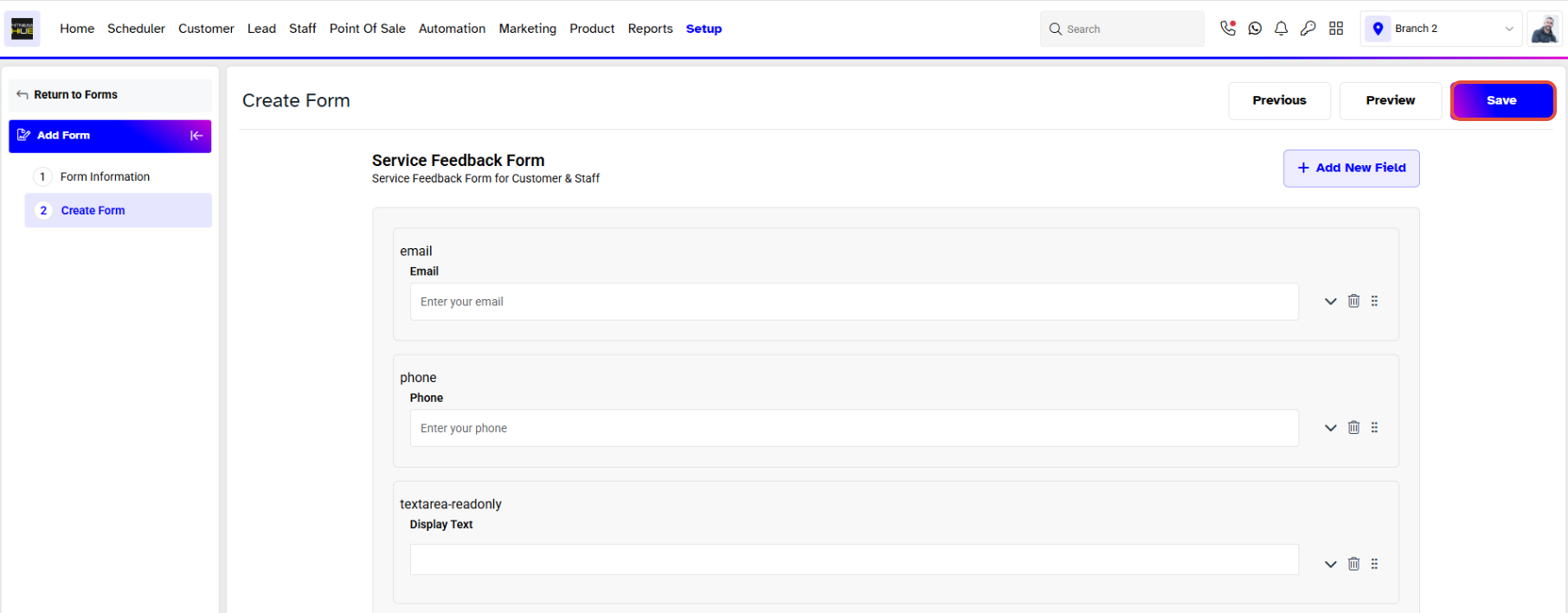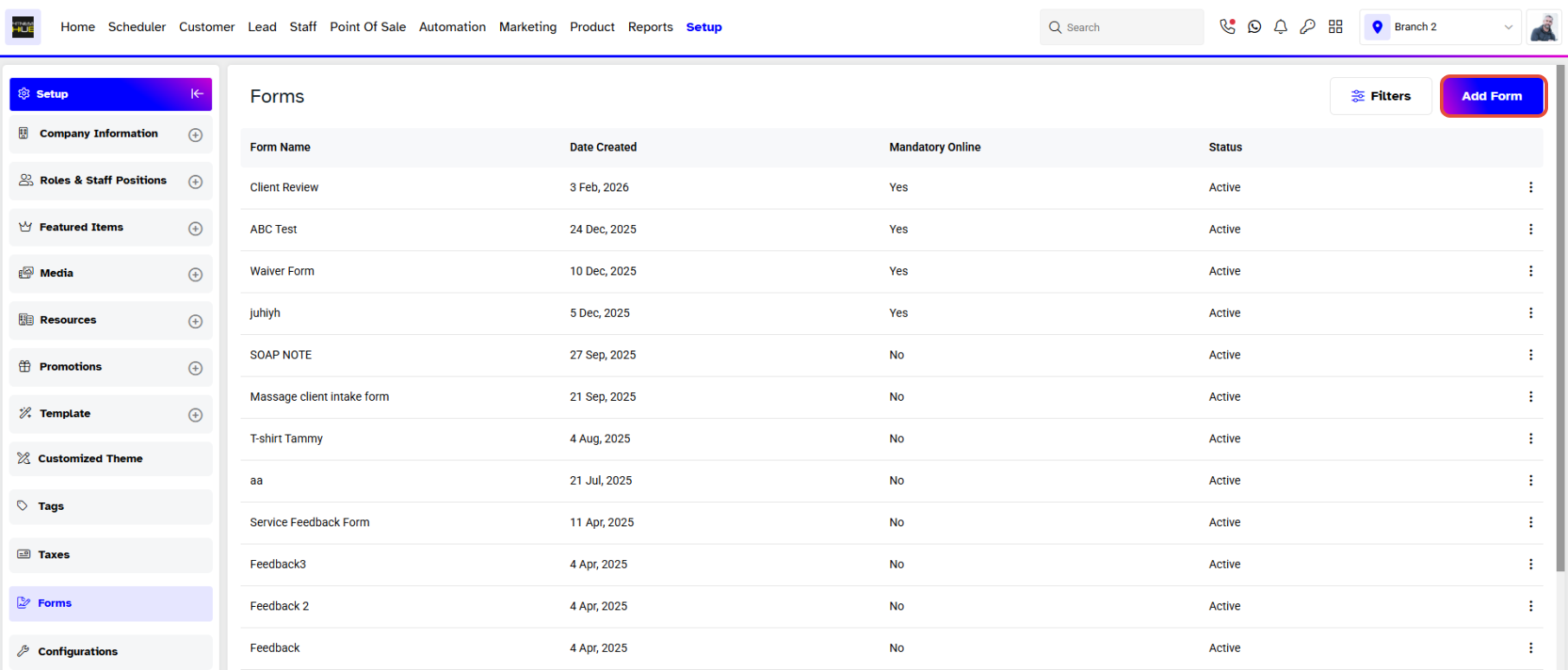 Active Toggle: This toggle determines whether the form is active or inactive in the branch.