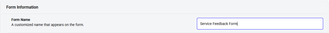 Form Name: Enter the name of the Form. This is a required field that can include alphanumeric characters, with a limit of 50 characters.
