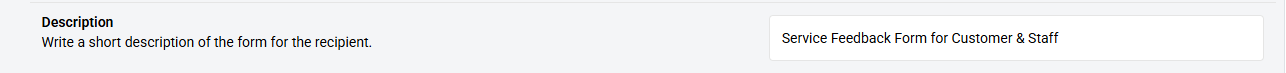 Description: This is the description field of the form, which can include alphanumeric characters. The character limit is 350.