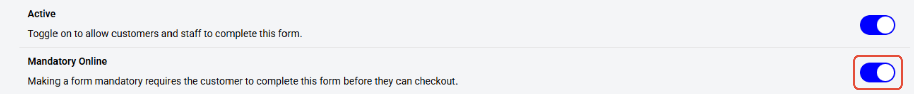 Mandatory Toggle: This toggle determines whether the form is mandatory for customers to complete.