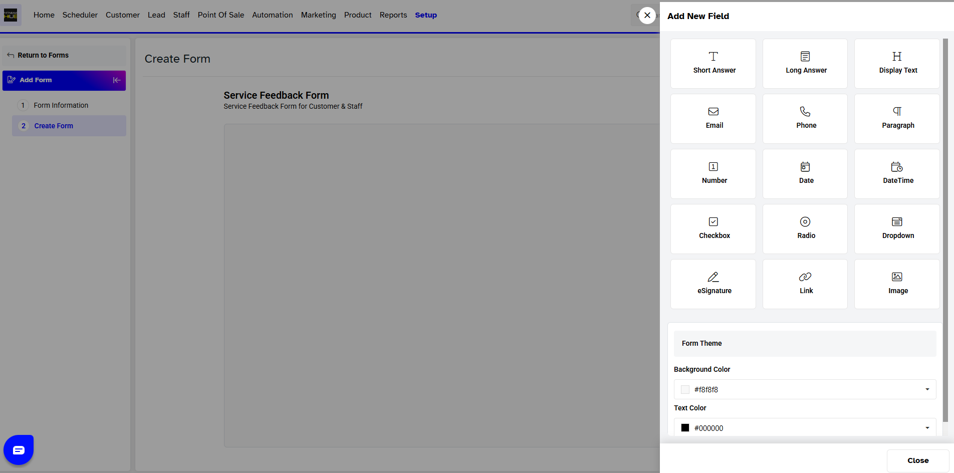 To set up a Service Feedback Form in Core, follow the steps below: