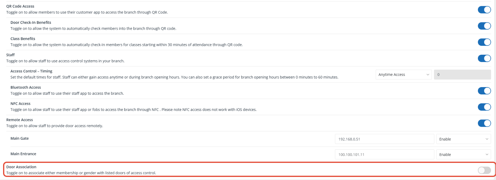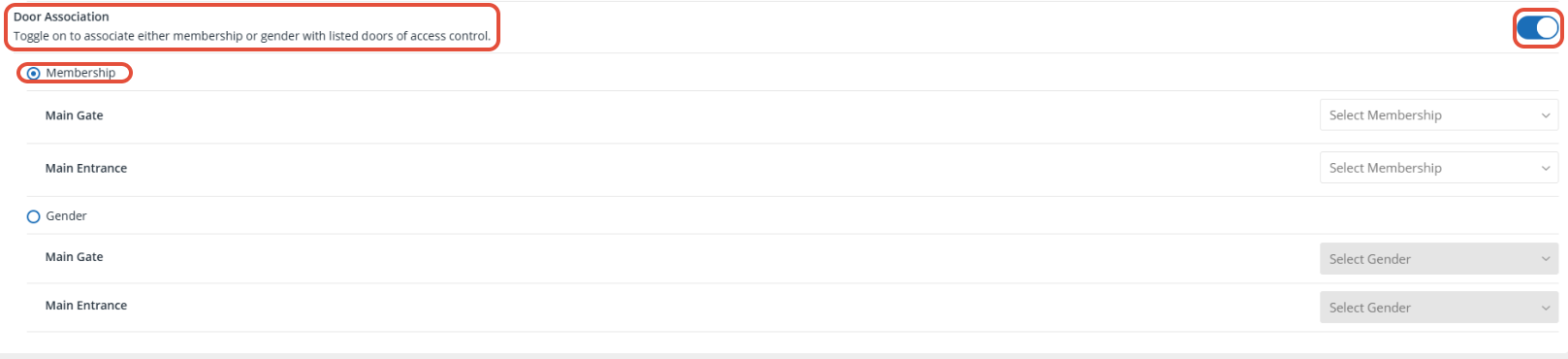 Toggle on to configure the Door Association functionality.