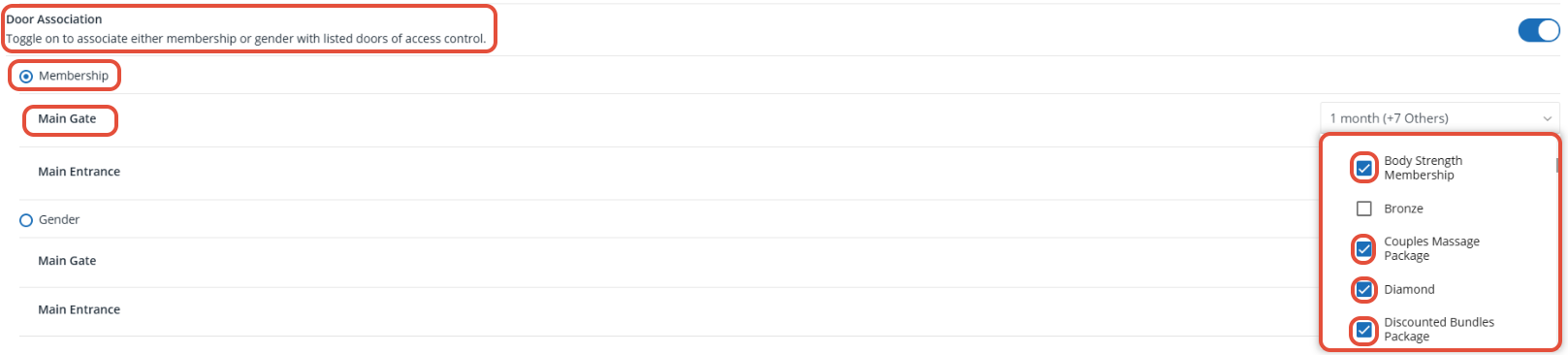 - You can select as many memberships as you want for each door.