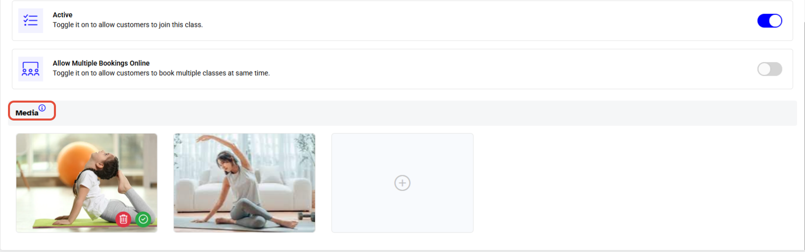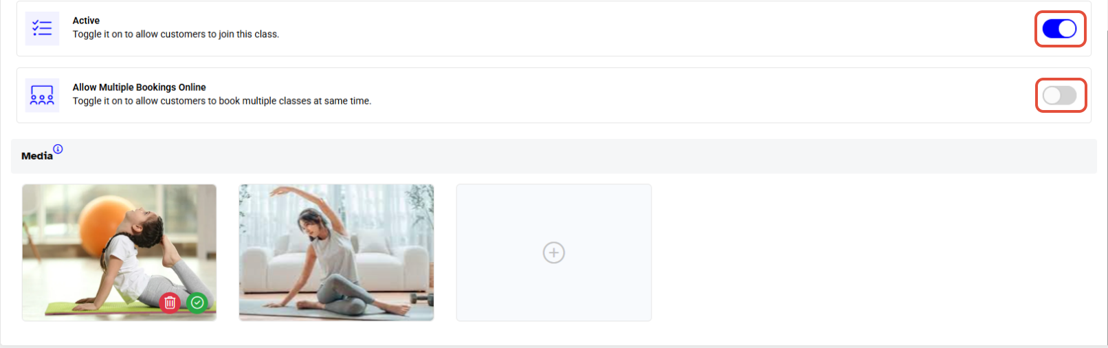Inactive Classes are not visible to customers.Allow Multiple Bookings Online: