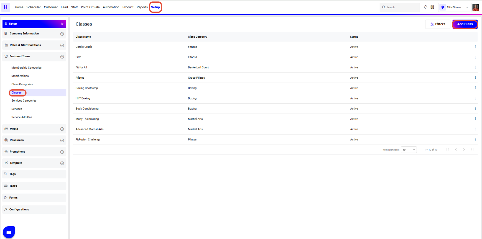 Select Classes from the Featured Items tab.