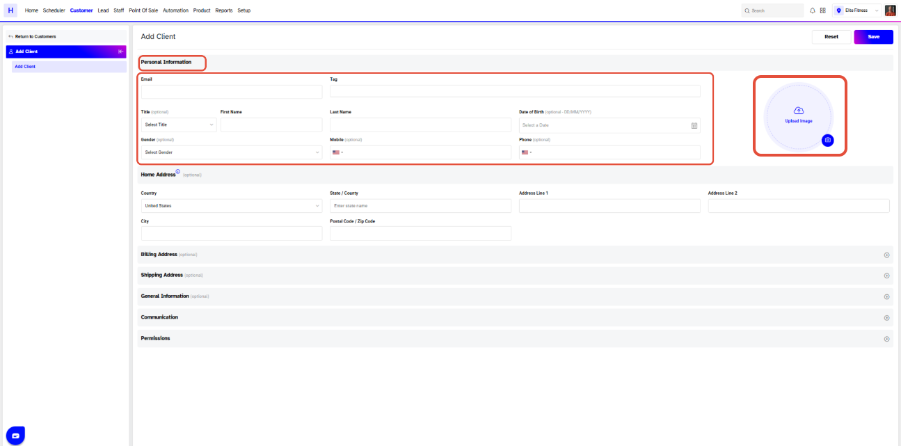This guide explains how to add a Client in Core. A Client is a non-member individual who interacts with your business—for example, by booking services or purchasing items without an active membership. The guide covers all sections required to create a client profile, including personal details, address information, general data, and permissions, helping you manage clients smoothly and efficiently.
