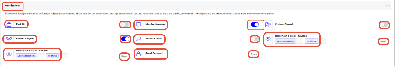Toggle ON the permissions you want to enable: