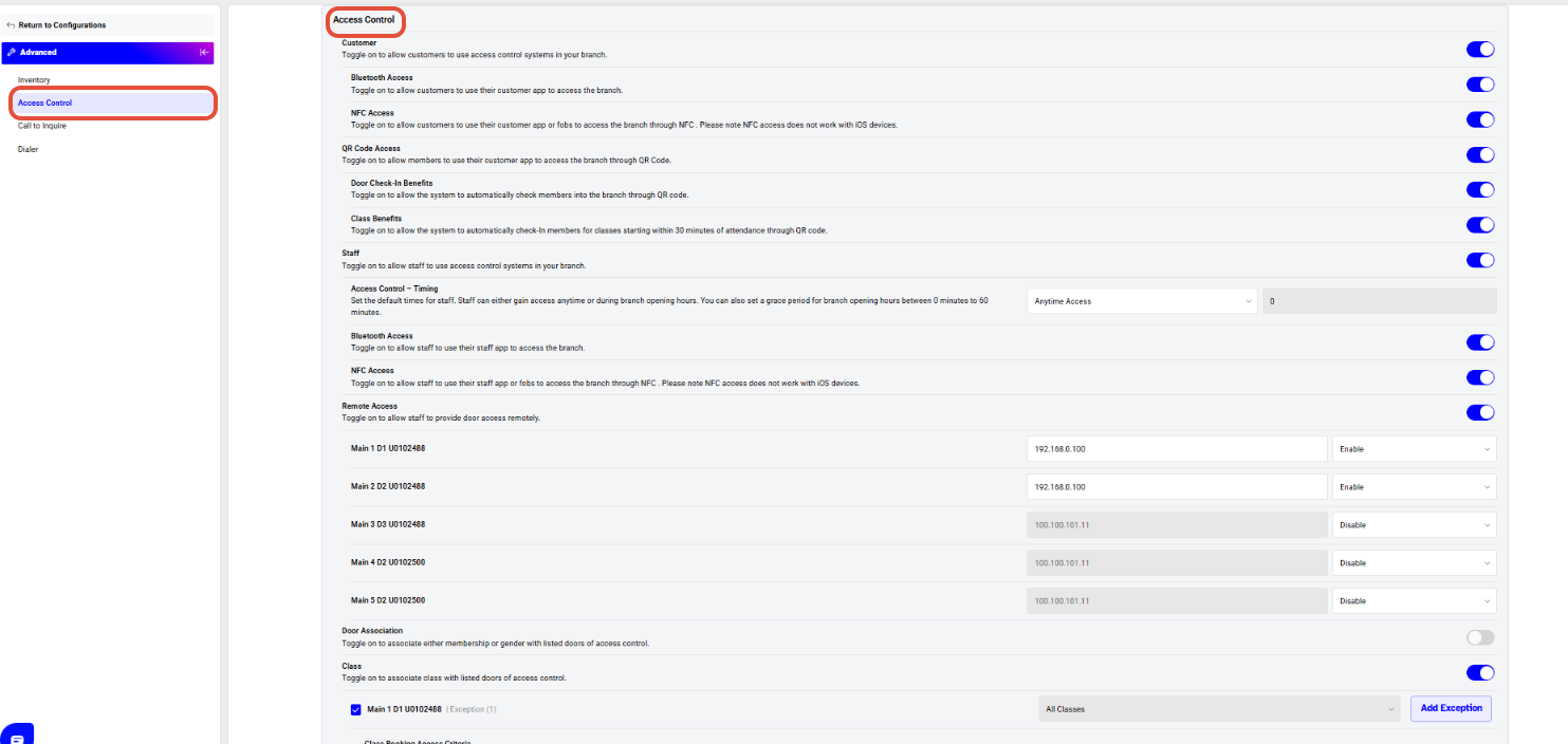 Scroll down in the Advanced Configuration to the access control
