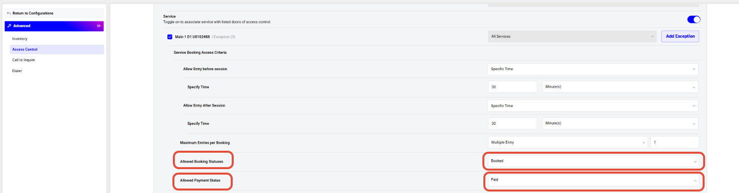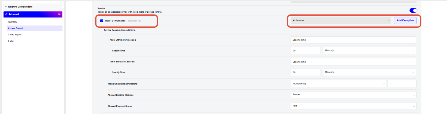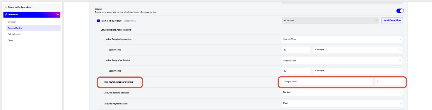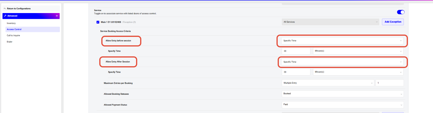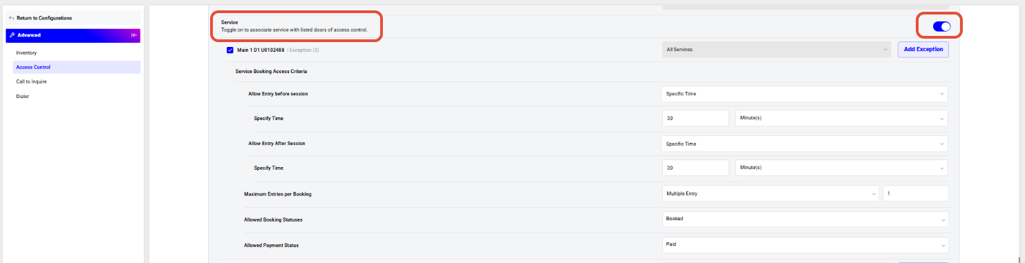 Allow Entry After Service (Optional)